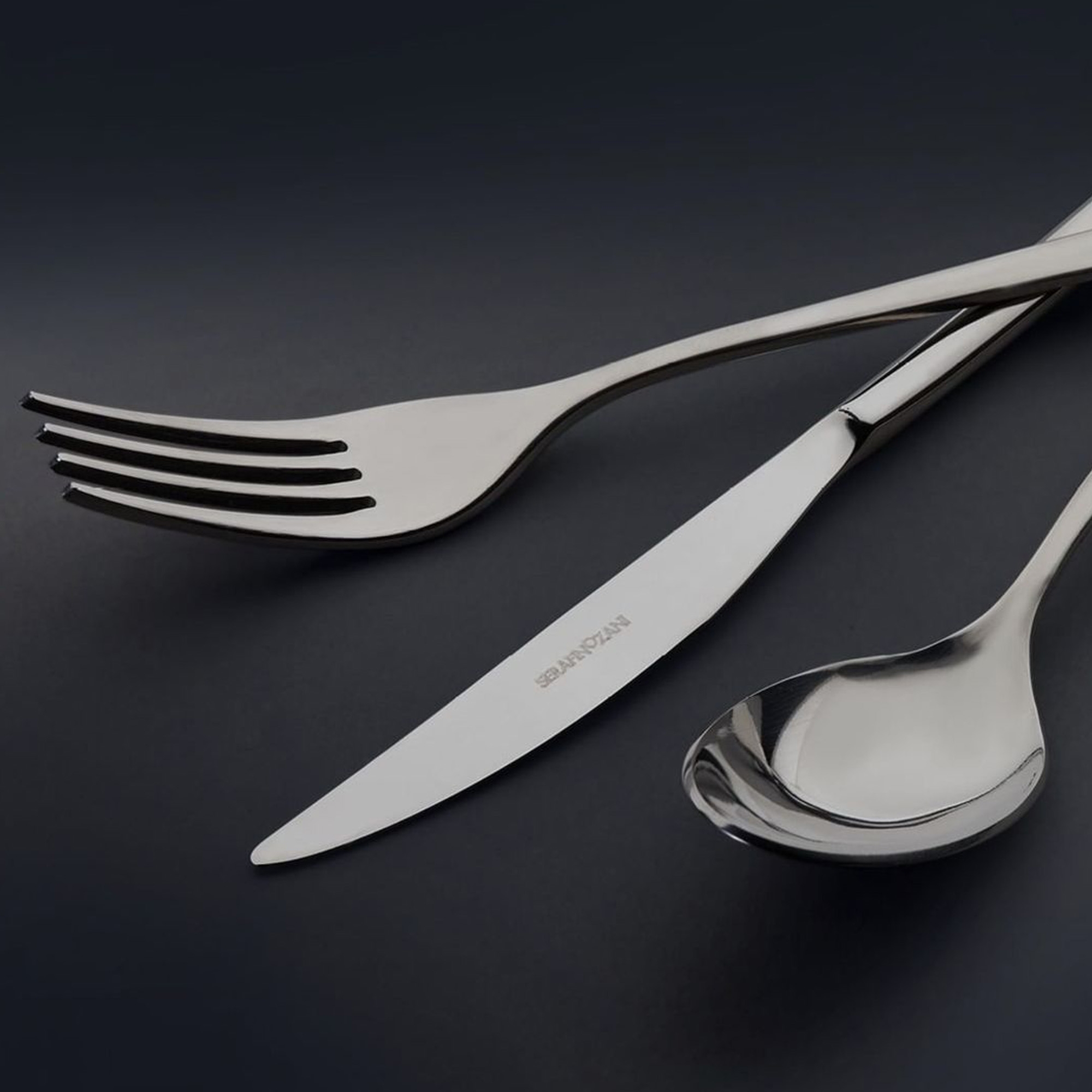 Il servizio di posate Asso, 24 pezzi, è stato realizzato con maestria da Serafino Zani in Acciaio Inox 18/10 di alta qualità e spessore con finitura lucida, materiale ammirato per la sua resistenza e robustezza. La rifinitura lucida è stata realizzata a mano e le linee sono perfettamente equilibrate e piacevoli al tatto, il che rende questo servizio particolarmente elegante e raffinato. La confezione include 6 cucchiai da tavola, 6 forchette da tavola, 6 coltelli da tavola, 6 cucchiaini da caffè, coprendo pienamente le esigenze di un'esperienza culinaria completa, dalla cena informale a un pranzo elegante. Inoltre, tutti i pezzi sono lavabili in lavastoviglie. L'innovativo design Asso, si caratterizza per le sue forme moderne e semplici, donando un aspetto contemporaneo e raffinato che si adatta facilmente a varie tipologie di stoviglie. Scegliere il servizio di posate Asso significa investire su dei prodotti all'avanguardia e funzionali. Acquista anche tu questo servizio di Serafino Zani proprio qui, su Newpop.it!