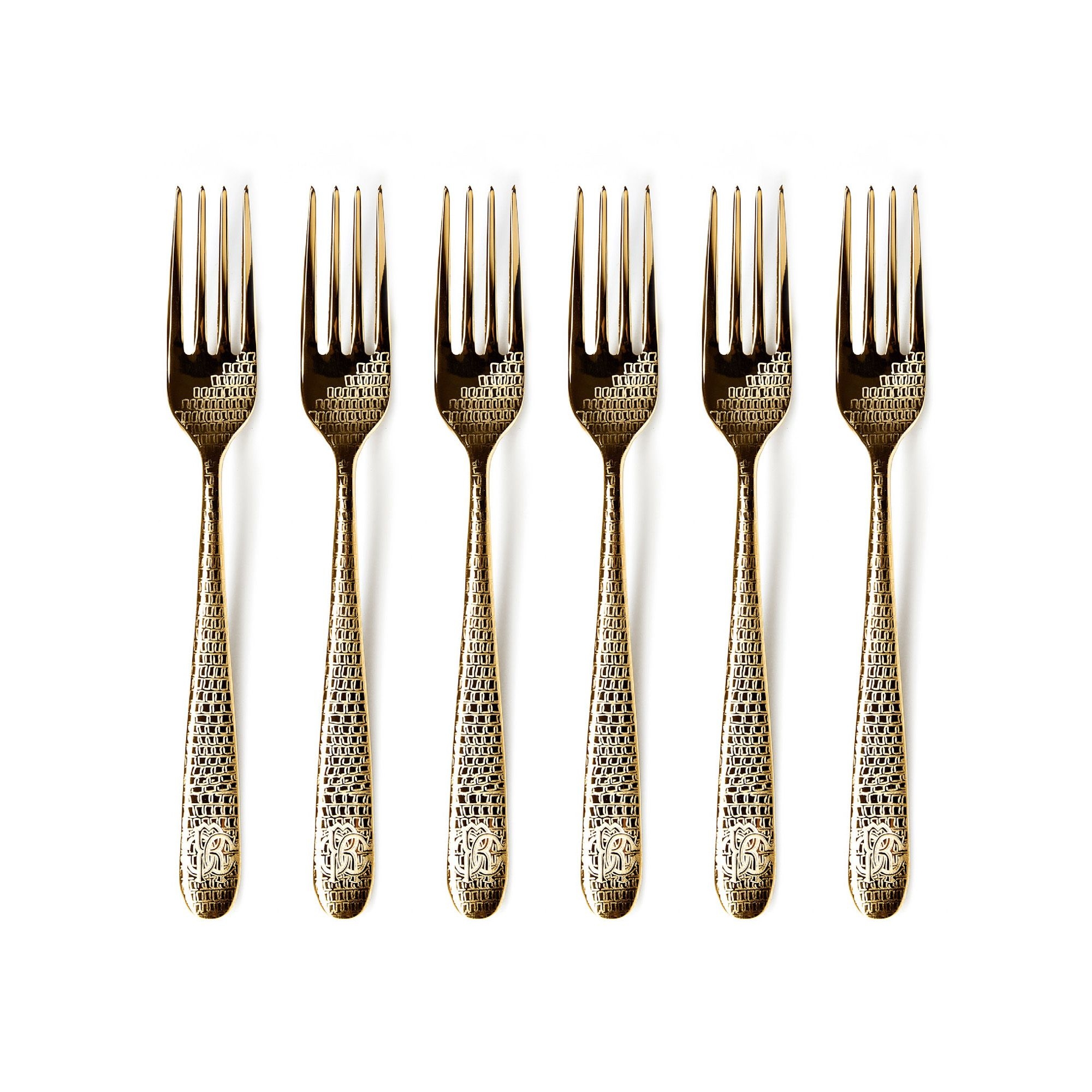 Roberto Cavalli 6 forchette da dessert Lizzard Gold