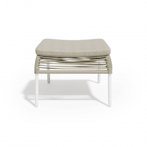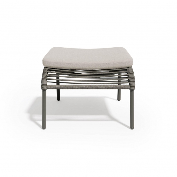 Pouf da esterno Pleasure 2.0 realizzato con struttura in alluminio bianco o grafite rivestito da una trama intrecciata di corde simili a fibre tessili e cuscino della seduta rivestito in tessuto outdoor. Questo pouf moderno e versatile arricchisce con eleganza giardini, terrazze e bordi piscina, offrendo una seduta extra o un comodo appoggio per godere appieno dei tuoi momenti di relax. Realizzato con materiali di alta qualità e progettato per resistere agli elementi, Pleasure 2.0 sfoggia una linea pulita e minimalista che si adatta a qualsiasi contesto esterno. Durante le calde giornate estive o le serene serate all'aria aperta, il pouf Pleasure 2.0 si rivela un compagno insostituibile, aggiungendo una nota di comfort senza tempo e rilassatezza. Non solo un elemento funzionale, ma anche un vero e proprio simbolo di design: i colori e i tessuti selezionabili ne fanno un oggetto su misura per il tuo gusto, in grado di integrarsi perfettamente con lo stile dell'arredo esterno esistente. Il pouf Pleasure 2.0 è semplice da spostare e da pulire, rappresentando una soluzione pratica, oltre che esteticamente accattivante, per arricchire il tuo spazio open-air. Disegnato da Atmosphera Creative Lab.