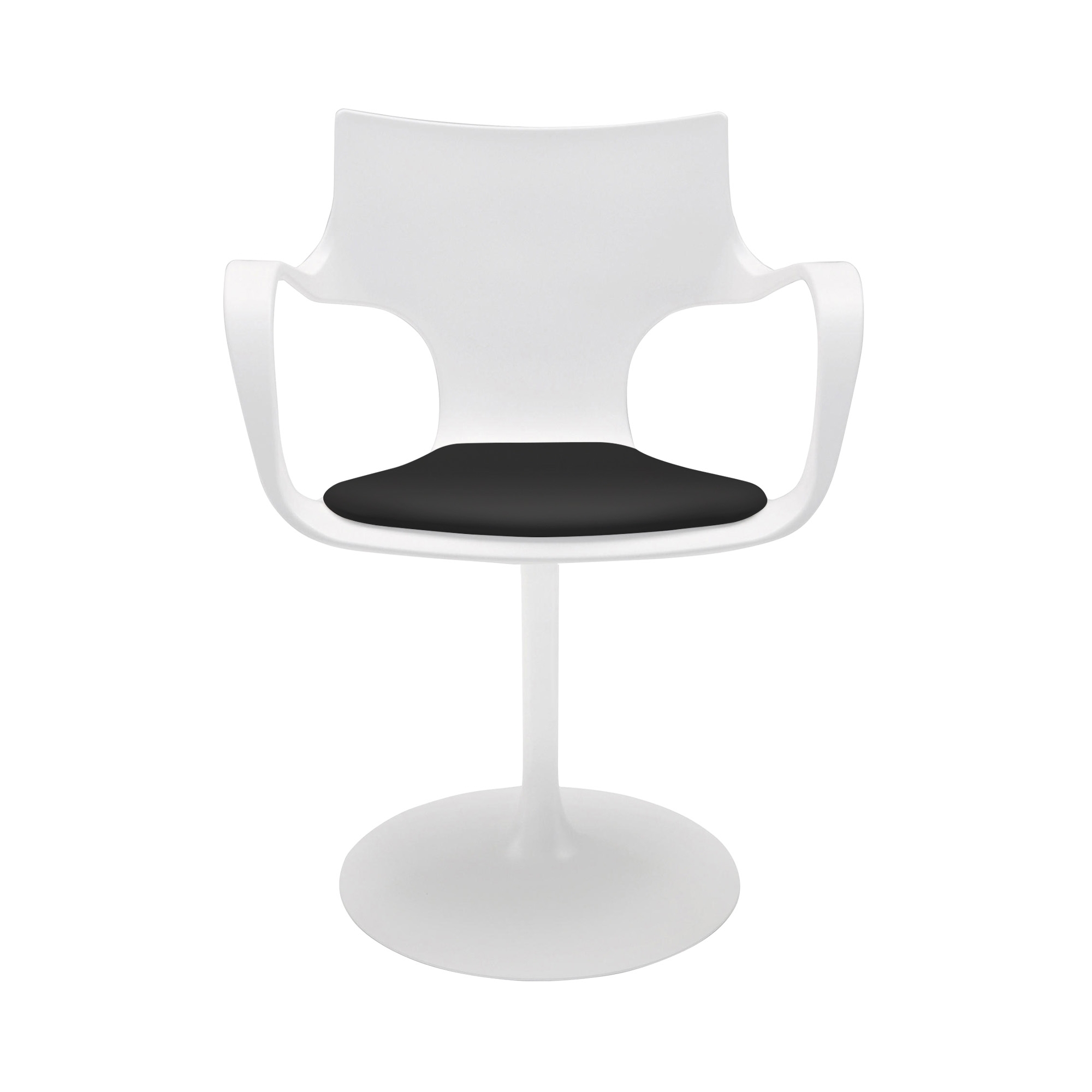 Sedia girevole con braccioli Flûte realizzata con struttura in metallo cromato o laccato bianco, nero o caffè. Scocca in polipoprilene bianco, nero o caffè. Seduta rivestita in ecopelle, finitura bianco, nero o caffè. Caratterizzata da una silohuette elegante, la sedia girevole Flûte offre la possibilità di ruotare a 360 gradi e offre un'esperienza di seduta versatile e confortevole. Realizzata con materiali di alta qualità, la sedia Flûte dona un tocco di modernità e raffinatezza a qualsiasi ambiente. Un'opera di design che unisce stile e funzionalità in modo perfetto. Disegnata da Studio Sovet.