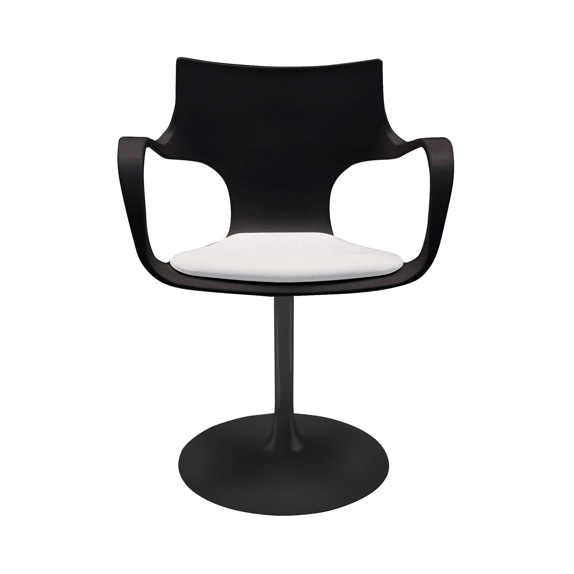 Sedia girevole con braccioli Flûte realizzata con struttura in metallo cromato o laccato bianco, nero o caffè. Scocca in polipoprilene bianco, nero o caffè. Seduta rivestita in ecopelle, finitura bianco, nero o caffè. Caratterizzata da una silohuette elegante, la sedia girevole Flûte offre la possibilità di ruotare a 360 gradi e offre un'esperienza di seduta versatile e confortevole. Realizzata con materiali di alta qualità, la sedia Flûte dona un tocco di modernità e raffinatezza a qualsiasi ambiente. Un'opera di design che unisce stile e funzionalità in modo perfetto. Disegnata da Studio Sovet.