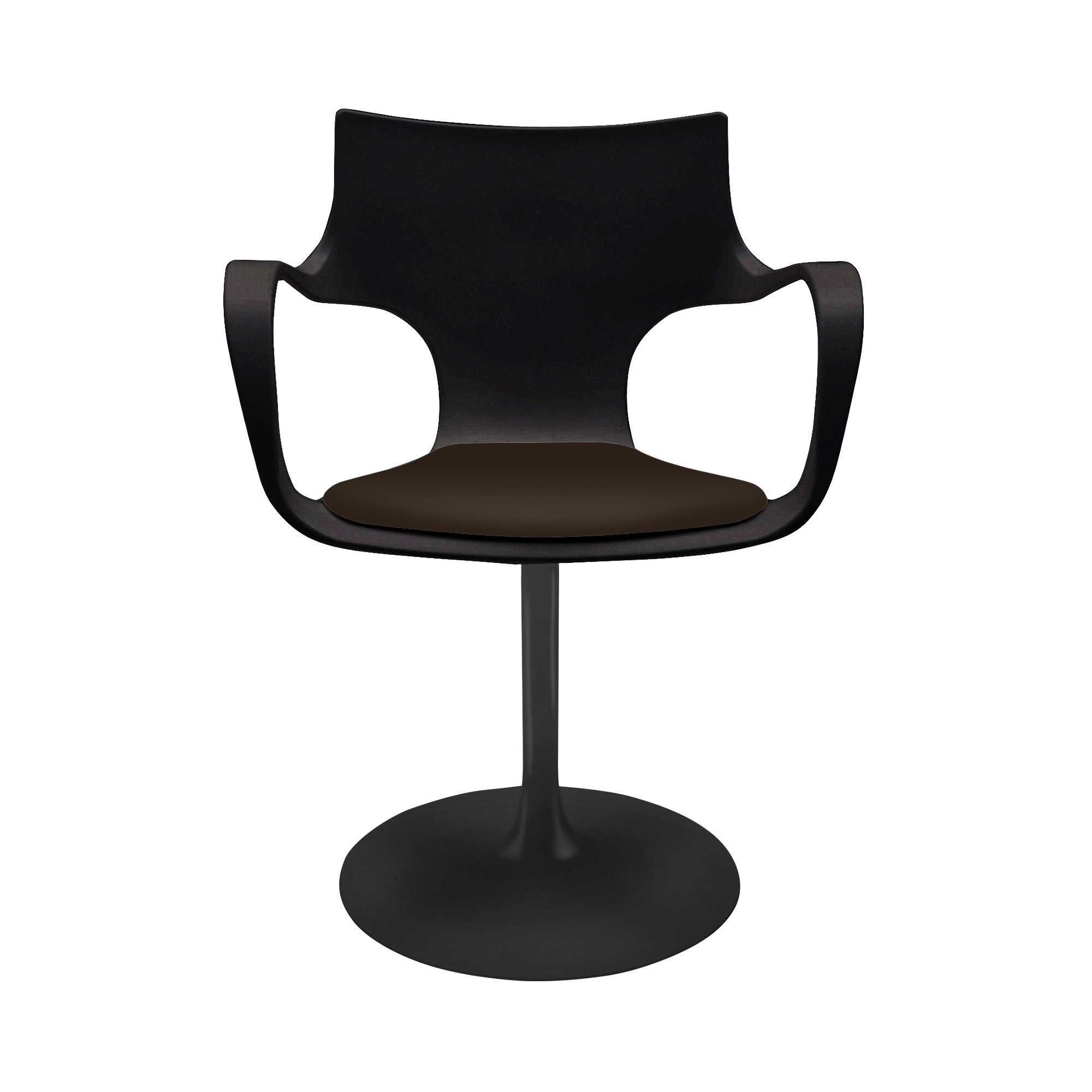 Sedia girevole con braccioli Flûte realizzata con struttura in metallo cromato o laccato bianco, nero o caffè. Scocca in polipoprilene bianco, nero o caffè. Seduta rivestita in ecopelle, finitura bianco, nero o caffè. Caratterizzata da una silohuette elegante, la sedia girevole Flûte offre la possibilità di ruotare a 360 gradi e offre un'esperienza di seduta versatile e confortevole. Realizzata con materiali di alta qualità, la sedia Flûte dona un tocco di modernità e raffinatezza a qualsiasi ambiente. Un'opera di design che unisce stile e funzionalità in modo perfetto. Disegnata da Studio Sovet.