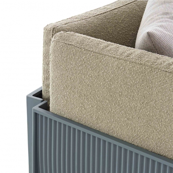 La poltrona Onde è una meraviglia di design progettata dal designer italiano Luca Nichetto per Gandía Blasco che firma una linea di complementi d'arredo da vivere con piacevolezza all'aperto. La poltrona si sviluppa intorno ad una geometria rigorosa e d'impronta moderna che le conferisce grande personalità e si fa apprezzare per le sue proporzioni generose per regalare uno charm unico in un giardino privato o su un terrazzo di un resort lussuoso sia di mare che di campagna. I suoi ampi cuscini offrono il massimo comfort, i tessuti impermeabili sono stati progettati per durare nel tempo e la sua leggera struttura assicura resistenza agli agenti atmosferici per accompagnarti in ogni stagione con sofisticata semplicità.