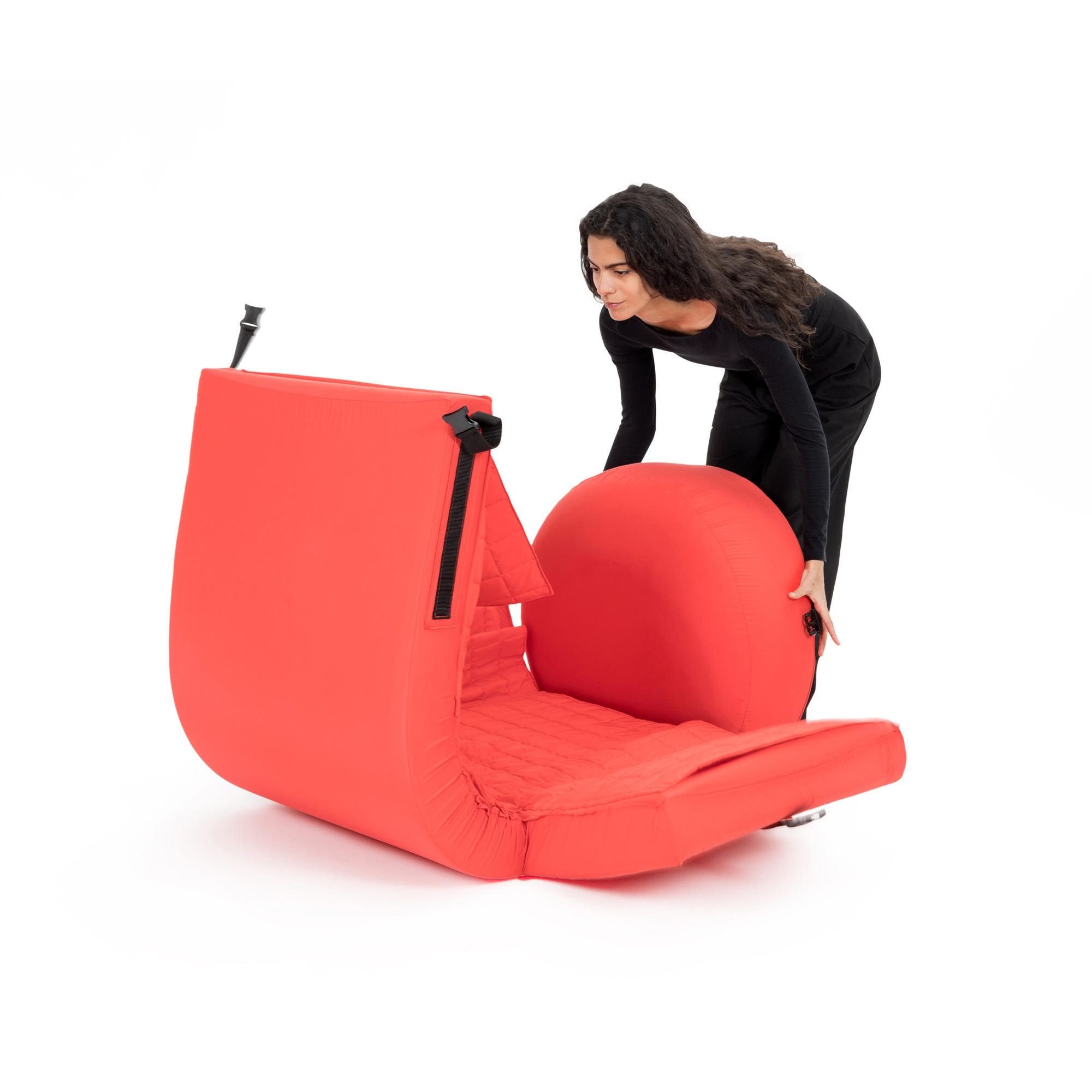Poltroncina trasformabile Ipno realizzata in poliuretano. Disponibile in 3 colori, la poltroncina trasformabile Ipno è l'ideale per chi cerca una soluzione versatile e spaziosa per il proprio ambiente domestico o lavorativo. Ipno si distingue per la sua capacità di trasformarsi da una elegante poltroncina in un comodo materassino in pochi secondi. La sua struttura è priva di componenti rigide, realizzata interamente in un materiale mono-materico che non solo garantisce un'isolamento ottimale dal pavimento, ma offre anche un'ampia e accogliente superficie per il riposo. Chiusa, Ipno presenta un profilo compatto, contenuto entro solide cinghie con pratiche clips, facile da spostare e da riporre. All'interno di Ipno, è nascosto un soffice trapuntino caldo e avvolgente, su misura per garantire un comfort ineguagliabile. Il trapuntino, insieme al rivestimento sfoderabile e lavabile, disponibile in vari colori, rende questa poltroncina trasformabile adatta a ogni stagione e stile decorativo. L'ergonomia di Ipno è studiata per offrire il massimo sostegno e relax, adattandosi perfettamente alle curve del corpo. Ipno non è solo una poltroncina trasformabile, ma una vera e propria esperienza di comfort e stile, progettata per coloro che apprezzano l'innovazione e il design intelligente. Realizzata da Campeggi.