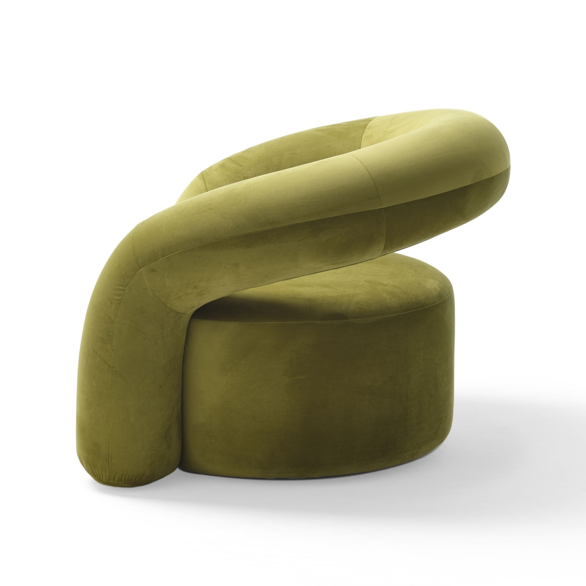 Poltroncina Nora realizzata con struttura in metallo e multistrato curvato, rivestimento in tessuto disponibile in varie categorie (non sfoderabile). La poltroncina Nora incanta con le sue forme morbide ed accoglienti, invitando a momenti di relax in un'atmosfera quasi fiabesca. Realizzata con una struttura in multistrato curvato, Nora rappresenta il connubio perfetto tra design innovativo e comfort impareggiabile. Le sue curve sinuose, che ricordano un mondo astratto ed utopico, la rendono non solo un pezzo di arredo, ma un vero e proprio oggetto d'arte che aggiunge un tocco di eleganza unica ad ogni ambiente. Con il suo aspetto rassicurante e costruzione robusta, Nora è progettata per offrire un'esperienza di seduta eccezionale, abbracciando chi vi si accomoda in un confort caldo e avvolgente. Ideale per coloro che cercano un equilibrio tra funzionalità e estetica raffinata, questa poltroncina si adatta perfettamente a diversi contesti abitativi, dagli spazi minimalisti e moderni, fino agli ambienti più classici e tradizionali. La poltroncina Nora è l'opzione ideale per aggiungere un tocco di stile e comodità in più al tuo living, studio o camera da letto, armonizzandosi perfettamente con gli altri elementi d'arredo. Disegnata da Alberto Ghirardello per Mogg.
