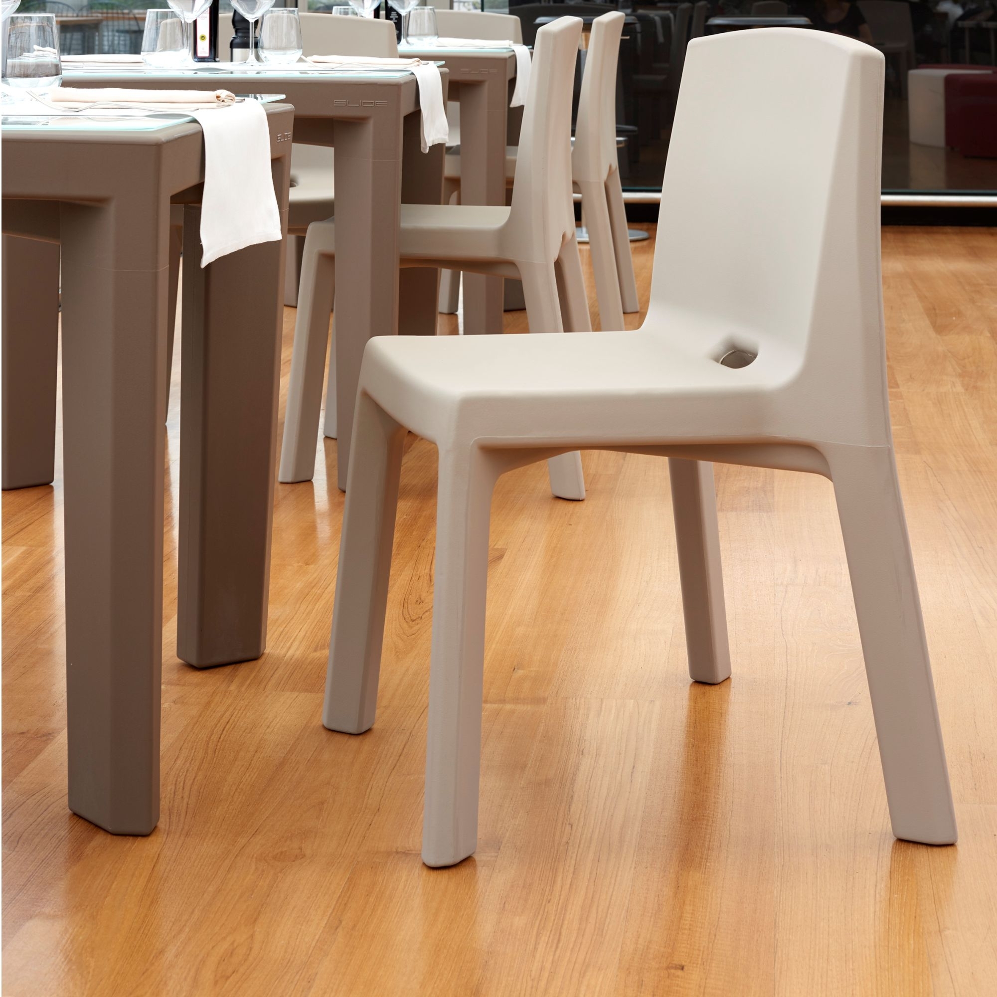 La sedia Q4 rappresenta una brillante incarnazione della filosofia progettuale di Slide, che unisce in maniera impeccabile funzionalità e stile, realizzata in polietilene 100% riciclabile, materiale versatile e resistente. Q4 è una sedia solida e pratica dal design minimalista, disponibile in varie colorazioni, che si abbina perfettamente a qualsiasi ambientazione e tipologia di arredamento, dal moderno al classico: che sia collocata all'interno di un soggiorno, in una veranda oppure in un giardino con piscina, la sedia Q4 è particolarmente invitante e in grado di donare un tocco di colore e vivacità. La leggerezza del materiale consente una facile maneggevolezza e impilabilità, caratteristiche che rendono la Q4 particolarmente adatta ad ambienti dinamici e multifunzionali. Che venga utilizzata in ambienti indoor o outdoor, per eventi informali o più formali, la sedia Q4 di Slide è la prova che il design funzionale può essere allo stesso tempo sostenibile, esteticamente gradevole e incredibilmente invitante. Disegnato da Jorge Najera per Slide.