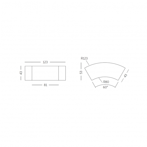 Dimensioni: Lunghezza 123 cm, Profondità 53 cm, Altezza 43 cm