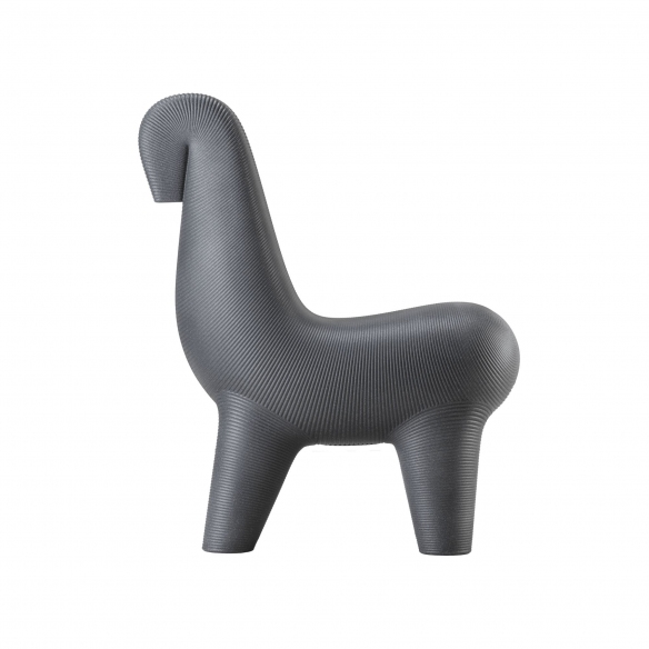 La sedia Ghoda è una seduta con una presenza fisica energica, realizzata da Qeeboo interamente in polietilene riciclabile, materiale resistente, eco-compatibile e duraturo. Rispecchiando il talento artistico del designer, la sedia raffigura un cavallo in una forma stilizzata, ispirata all'opera più iconica di Satyendra Pakhalé, la famiglia BM Horse creata nel 2000. Ghoda si riferisce alla sua "sensualità" e al "processo di fusione a cera persa a spaghetti", un progetto tra artigianato e industria, la sua immagine si muove tra cultura etnica e pop. Adatta sia ad interni moderni che ad esterni, grazie alla sua resistenza agli agenti atmosferici, può essere utilizzata come seduta convenzionale o come elemento di design scultoreo che impreziosisce lo spazio in cui viene inserita: che sia posizionata in salotto, in soggiorno oppure nella cameretta dei tuoi bambini, questa sedia dona un tocco di magia e stupore. Disegnata da Satyendra Pakhalè per Qeeboo.