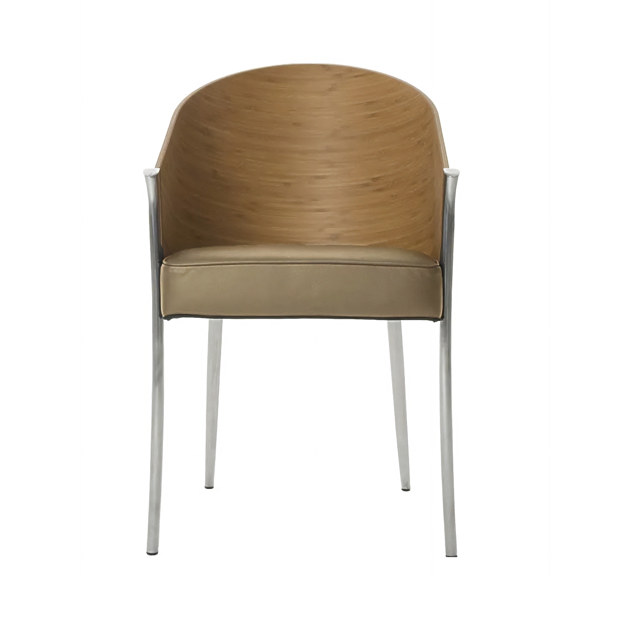 Poltroncina con struttura tubolare in acciaio verniciato e scocca in legno di mogano. Disegnato da Philippe Starck per Driade.
