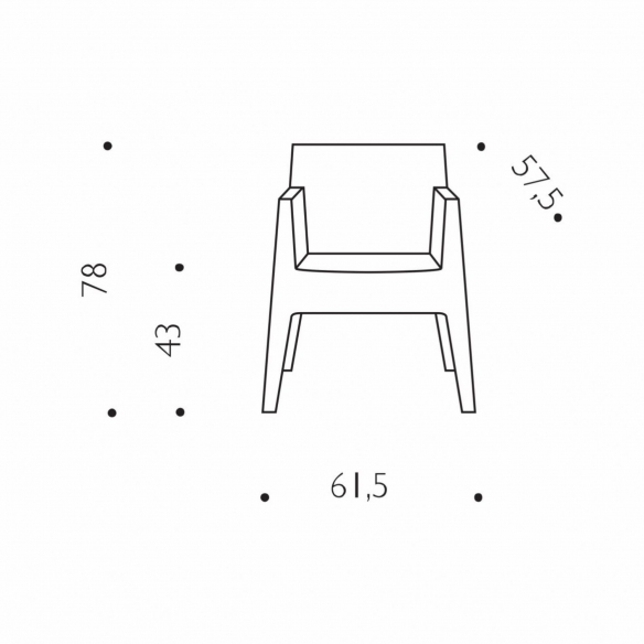 Dimensioni: Larghezza 61,5 cm, Profondità 57,5 cm, Altezza 78 cm, Altezza seduta 43 cm