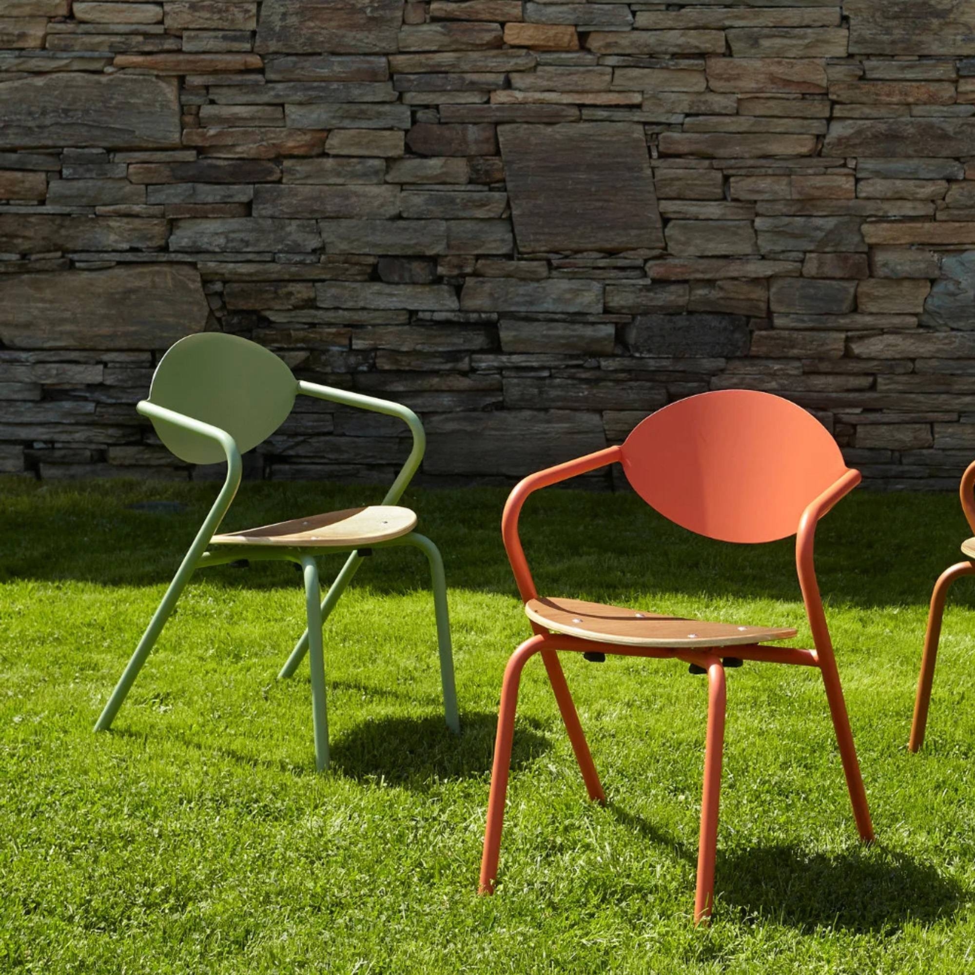 Poltroncina per esterni Capa Lounge con struttura realizzata in acciaio con verniciatura a polveri epossidiche, seduta in compensato marittimo Okumé e personalizzabile scegliendo tra un'ampia selezione di colori disponibili e con geometrie interessanti che si incrociano verso la seduta e uno schienale quasi sospeso e tenuto insieme al resto da comodi braccioli. La poltroncina è l'ideale per arredare un'area dining indoor o outdoor. Disegnata da Eduardo Rodrigues per Adico.