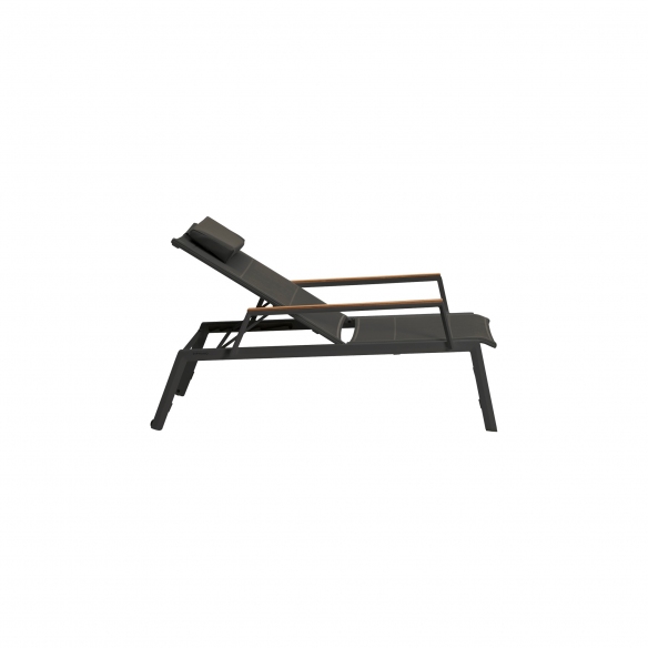La sedia a sdraio Selecta, con braccioli in teak, è stata reallizzata con materiali di primo livello, come l'alluminio leggero e resistente, il tessuto Batyline che protegge la poltrona da acqua, raggi UV, umidità, e il legno Teak pregiatissimo, che garantisce comfort e calore per le tue braccia. Questa sedia a sdraio outdoor è un'espressione di lusso e raffinatezza, e può avere diverse combinazioni bellissime, per adattarsi al meglio con qualsiasi stile di decoro e arredamento, dal più classico a quello più moderno. La seduta Selecta è stata progettata per offrire il massimo del comfort: è spaziosa e accogliente,  accompagnata dal morbido tessuto Batyline che non ha bisogno di ulteriori cuscini. La sedia a sdraio Selecta con braccioli il Teak è una perfetta combinazione tra lusso e funzionalità; lo schienale può inclinarsi a piacere dell'utente. Che si tratti di godere di una tranquilla mattinata con caffè in giardino, o che si tratti di prendere il sole al mare o davanti la tua piscina, Selecta eleva ogni momento di relax, con una qualità senza compromessi.