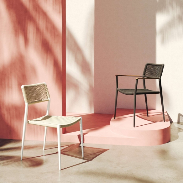 La sedia Ray è realizzata con materiali di altissima qualità, come la struttura in alluminio robusto e leggero che rende la sedia perfetta per gli spostamenti. Questa sedia outdoor è stata concepita con una visione innovativa, poiché unisce eleganza, resistenza e comfort in una soluzione unica di arredo. Ray è disponibile in quattro stupende colorazioni, in grado di renderla versatile con qualsiasi stile di arredo, dal minimalista al più classico. Diphano cura i minimi dettagli con attenzione, dal design della sedia alla selezione della corda intrecciata, rendendo la poltrona Ray un oggetto di desiderio per chi cerca una poltrona da esterno che sappia creare un'atmosfera avvolgente e confortevole. Ray è piacevolmente elegante alla vista e assolutamente funzionale; le corde intrecciate artigianalmente e resistenti compongono la seduta e lo schienale, aggiungendo un tocco naturale. La sedia Ray rappresenta l'essenza della raffinatezza e versatilità per gli spazi esterni. Rilassati pure tu in questo gioiello morbido e senza tempo.