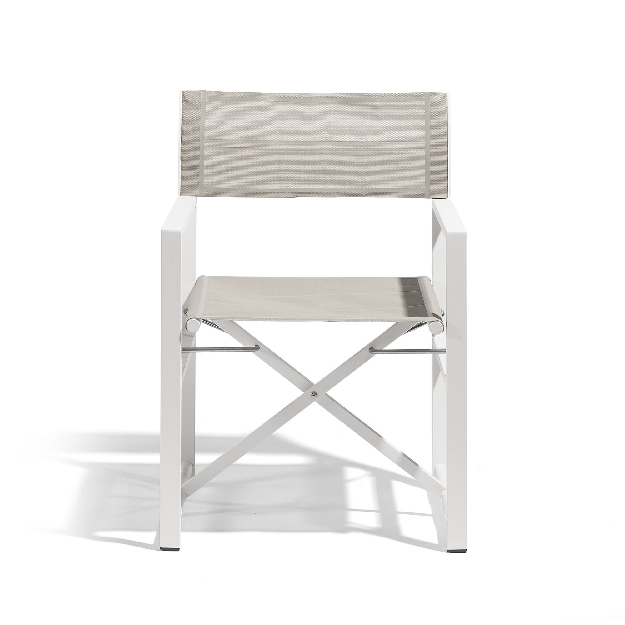 La sedia Regista Alexa è una scelta elegante e pratica per aggiungere un tocco di design al tuo giardino; questa sedia da regista è stata realizzata in alluminio di altissima qualità che promette robustezza e assicura durata nel tempo, e seduta e schienale sono foderati in tessuto Batyline in grado di resistere nel tempo a qualsiasi agente atmosferico come raggi UV, umidità o pioggia, perfetta per l'uso esterno. La sedia regista Alexa è disponibile in tre bellissime colorazioni, abbinandosi a qualsiasi stile e decoro, permettendo all'utente di personalizzare l'ambiente secondo le proprie preferenze; il suo design minimalista ed essenziale si integra a vari contesti quali giardini privati, terrazze di hotel o bordo piscina, contribuendo a creare uno spazio intenso e accattivante. Inoltre, questa meravigliosa sedia è facilmente pieghevole, perfetta per serate affollate in giardino o perfetta per hotel. Alexa è ideale tanto per momenti di puro relax al sole, con un libro in mano, quanto per eventi sociali in gruppo o feste in piscina, diventando un elemento indispensabile di arredo esterno per chi cerca un equilibro tra funzionalità e raffinatezza.