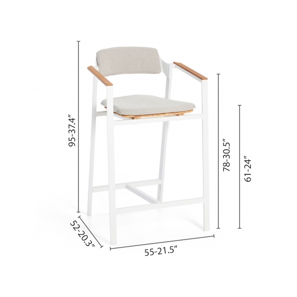 Sgabello Icon, con altezza di 61 cm, è un meraviglioso gioiello realizzato in alluminio robusto e leggero che facilita gli spostamenti, e in legno pregiato Teak che garantisce resistenza ai vari cambiamenti climatici come pioggia, umidità e raggi UV, quindi perfetto per l'utilizzo esterno. Disponibile in quattro diverse e bellissime colorazioni, lo sgabello Icon ha delle linee pulite e minimaliste, e si adatta armoniosamente a qualsiasi tipo di arredamento e stile, da un giardino rustico e naturale a un terrazzo più moderno. L'altezza di 61 cm lo rende ideale per essere accostato a bar o tavoli alti, offrendo una seduta confortevole per socializzare all'aperto. Il comfort per lo sgabello Icon è una priorità: questo oggetto di design presenta un poggiapiedi integrato per supportare una seduta gradevole per periodi prolungati. Inoltre, la finitura in Teak combinato all'alluminio verniciato a polvere, aggiunge un tocco caldo e naturale all'ambiente e lo rende perfettamente abbinabile ai tavoli da pranzo con finitura in Teak. Scegli lo sgabello Icon con altezza di 61 cm, e diventerà un must-have per il tuo comfort senza limiti.