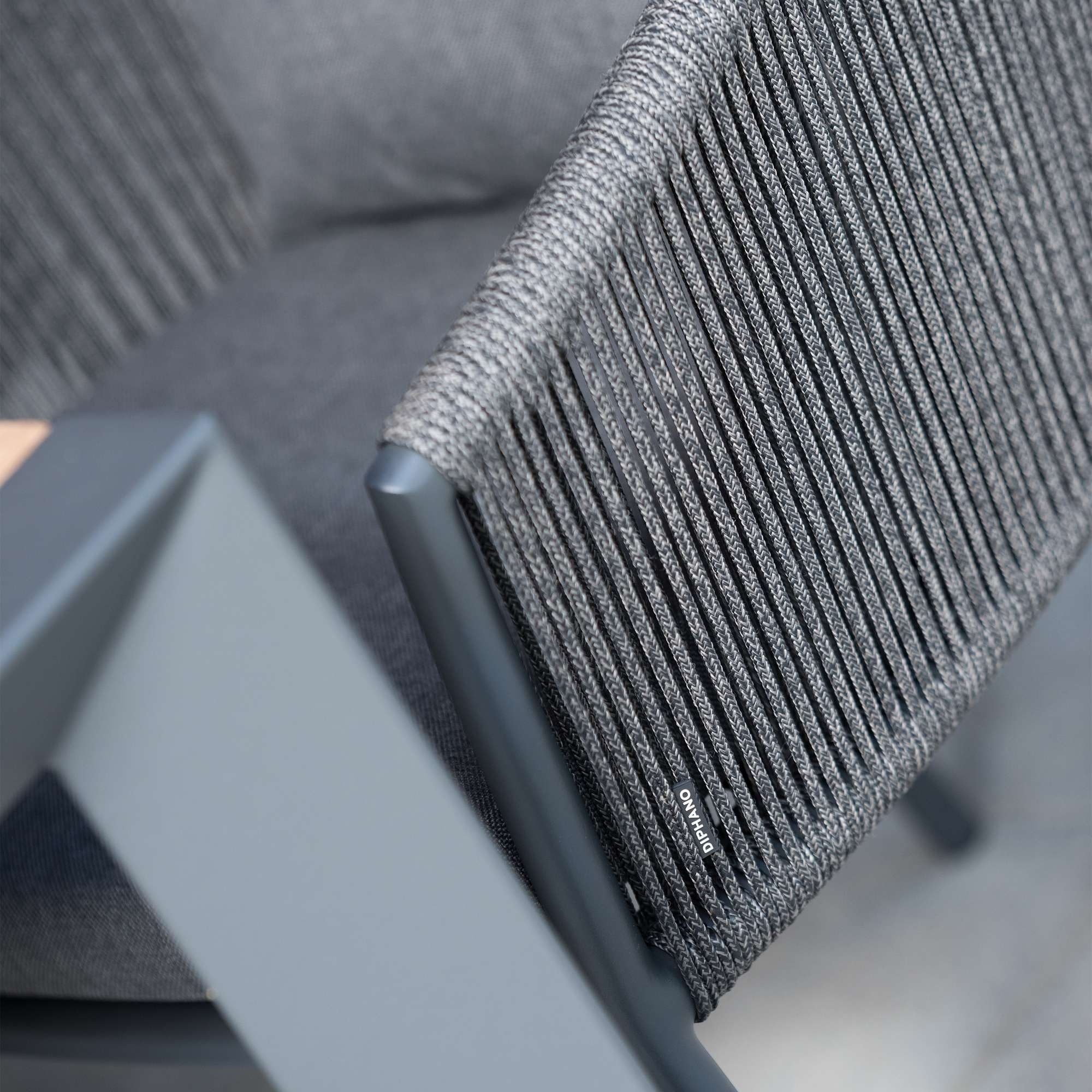 Sgabello bar Omer con altezza di 60,5 cm, realizzato da Diphano con materiali di alta qualità, combina il tessuto resistente ai vari agenti atmosferici come pioggia e raggi UV, la corda per lo schienale che regala un tocco di raffinatezza, e il metallo, offrendo una durabilità del prodotto ineguagliabile. Lo sgabello bar outdoor è disponibile in due meravigliose colorazioni e ha un design minimalista e delle linee pulite, in grado di adattarsi perfettamente a qualsiasi stile di decoro e arredamento, da un giardino più rustico o tradizionale, a un'ampia terrazza ultra-moderna. La seduta assicura il massimo relax anche durante un uso prolungato; il poggiapiedi integrato, invece, offre un ulteriore supporto, rendendo lo sgabello Omer il perfetto accompagnamento sia per i momenti di relax in solitudine che per momenti conviviali con amici e parenti. Un dettaglio particolare di questo sgabello outdoor è proprio la rifinitura in corda dello schienale, che regala comodità ed eleganza. Che si tratti di arricchire l'ambiente di un bar, un giardino o un patio, lo sgabello Omer 60,5 cm si distingue per la sua capacità indiscussa di unire bellezza, funzionalità e innovazione.