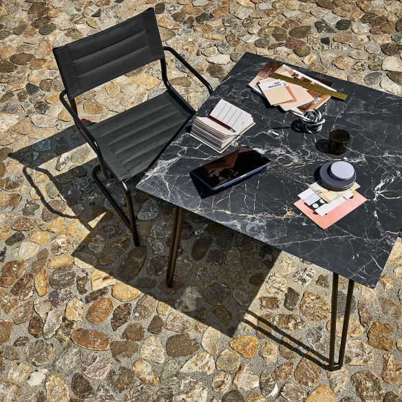 Poltroncina da esterno Sosta realizzata con telaio in acciaio inox sabbiato AISI 304 o verniciato a polvere e seduta e schienale in tessuto acrilico. Disponibile in varie combinazioni di colore, la poltroncina outdoor Sosta offre comfort, praticità e design senza pari. Impilabile e realizzata per il dondolio, Sosta invita ad un piacevole momento di pausa, simbolizzando proprio una sosta nel trambusto della vita quotidiana. Ulteriore dimostrazione della sua versatilità, Sosta non brilla solo per il suo aspetto classico in acciaio inossidabile. La sedia si offre infatti in una vasta gamma di colori vivaci e rinfrescanti. Ogni tonalità è studiata per dare un tocco di originalità e personalità al tuo spazio esterno, permettendoti di creare l'ambiente che meglio rappresenta il tuo stile. Goditi ogni singolo momento all'aperto come mai prima d'ora, circondato da arredi che incarnano il vero design italiano. Disegnata da Thomas Albrecht per Weishäupl.