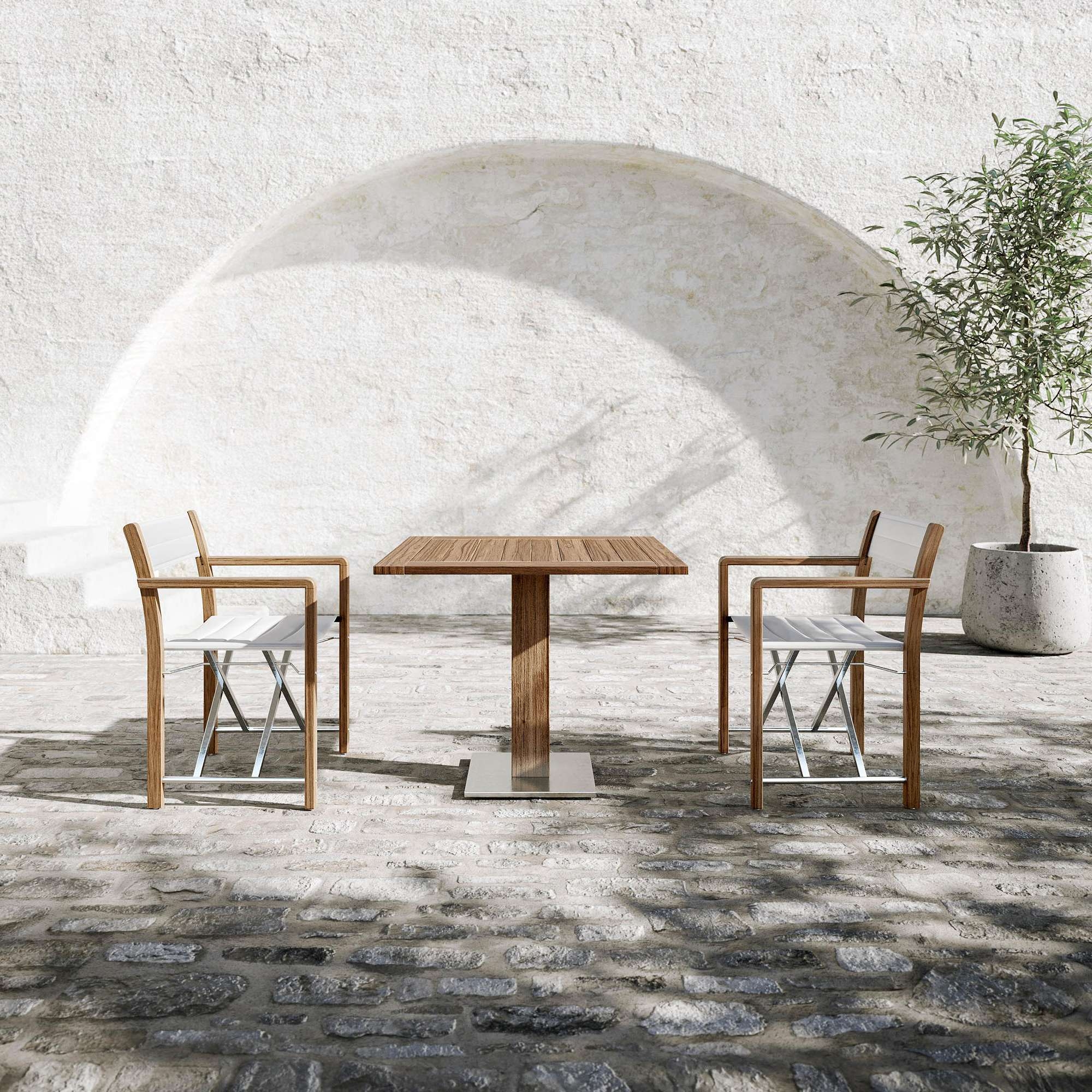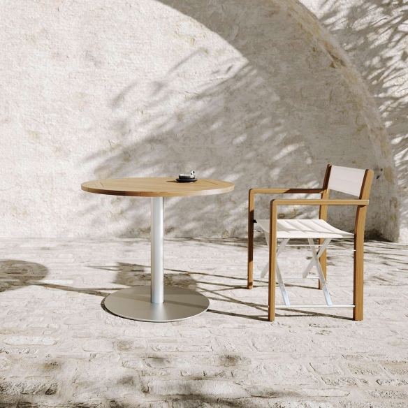 Sedia regista Dakota realizzata con struttura in teak, seduta in textilene bianco e dettagli in acciaio 304. La scelta del teak, noto per le sue proprietà estetiche e la sua resistenza agli agenti atmosferici, la rende ideale per ogni ambiente esterno, dal giardino alla terrazza, offrendo uno spazio accogliente e adatto sia alle chiacchierate fra amici che ai momenti di tranquilla lettura. La sedia regista Dakota è l'esempio di come funzionalità e stile possano convivere armoniosamente in un pezzo d'arredo che non passa inosservato. L'intreccio tra il calore naturale del legno di teak e la modernità del textilene, insieme alla lucentezza discreta dell'acciaio 304, conferisce a questa sedia regista un carattere distintivo e versatile, adatto a complementare qualsiasi scenario all'aperto. Progettata per essere uno spazio accogliente che si evolve in un luogo dedito alla conversazione e alla lettura, la sedia regista Dakota è la scelta ottimale per chi cerca un equilibrio tra eleganza senza tempo, robustezza materica e praticità d’uso. Per chi desidera arredare con gusto luoghi all'aperto trasformandoli in veri e propri rifugi dell'anima, la sedia Dakota di certo non deluderà le aspettative. Disegnata da Atmosphera Creative Lab.