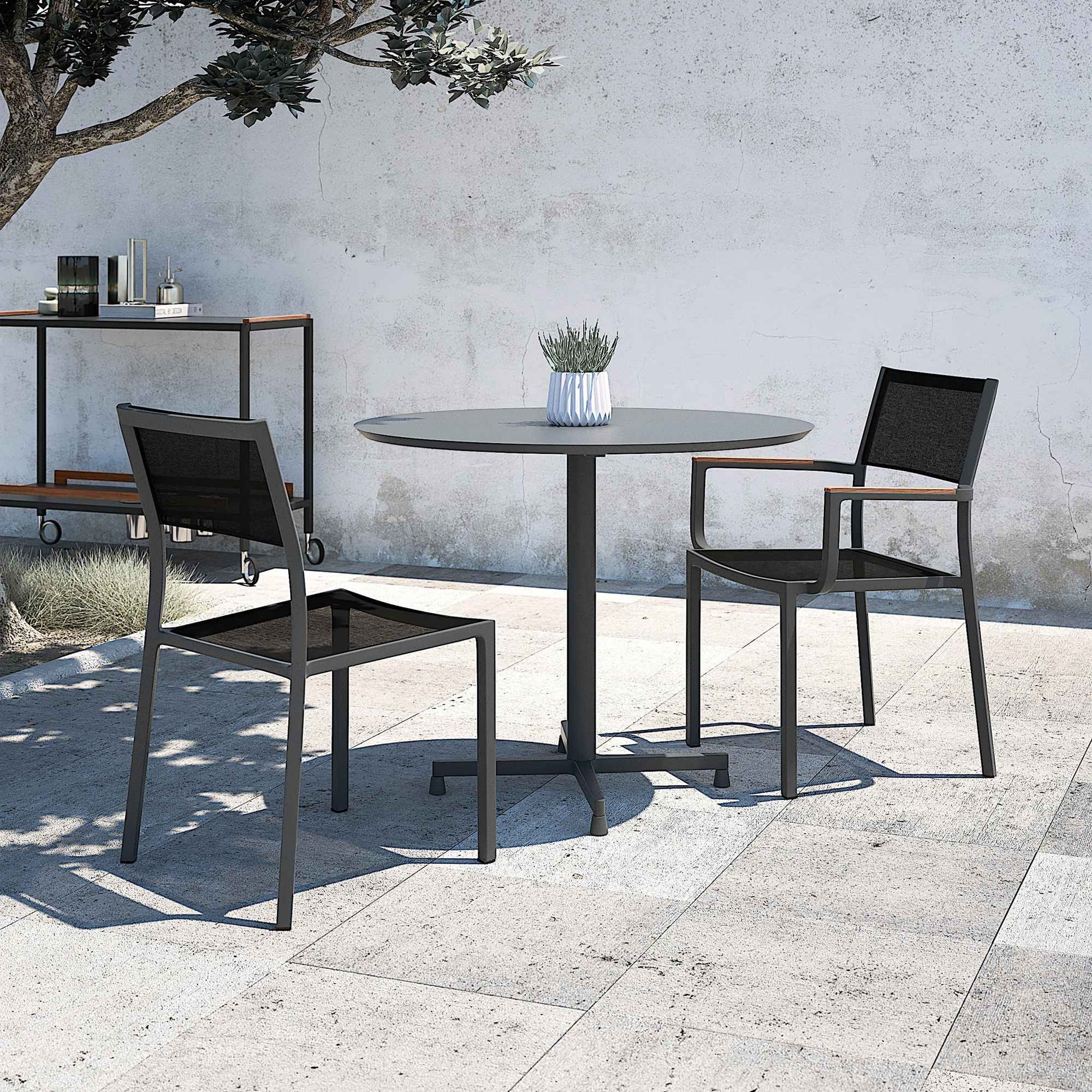 Sedia da esterno con braccioli Sunny realizzata con struttura in alluminio, seduta e schienale in textilene e dettagli in teak. Disponibile in 2 colori, la sedia outdoor Sunny rappresenta l'incarnazione dell'eleganza sobria e della semplicità senza tempo, valorizzata da un marcato senso del dettaglio. Questo esemplare di design unisce sapientemente la solidità e il calore degli inserti in teak con la modernità e la funzionalità della seduta in textilene termosaldata, disponibile nei colori bianco o grafite. Ogni sedia è progettata per assicurare non solo bellezza e confort ma anche un'alta resistenza agli agenti atmosferici, risultato della scelta di materiali durevoli e di qualità. La Sunny si distingue per la sua versatilità, adatta a completare ambienti esterni diversi per uso e stile: dal giardino privato alla terrazza di un locale, dal bordo piscina all'area lounge di un hotel. La sua struttura, elegante ma allo stesso tempo robusta, ne fa un elemento d'arredo esterno in grado di sfidare il tempo e le mode. Le linee pulite e il design attento rendono questa sedia non solo un pezzo funzionale ma un vero e proprio oggetto di design capace di dialogare con vari contesti estetici. La sedia da esterno Sunny è perfetta per chi ricerca un pezzo dall'anima contemporanea ma desidera allo stesso tempo conferire all'ambiente un senso di raffinata classicità. Disegnata da Atmosphera Creative Lab.