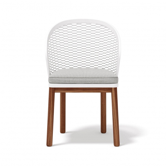 Sedia da esterno Cyrano realizzata con scocca in alluminio, base in teak e cuscino della seduta rivestito in tessuto outdoor. Disponibile in una vasta combinazione di colori, la sedia outdoor Cyrano è progettata meticolosamente per unire opulenza e funzionalità negli spazi esterni. La sedia da esterno Cyrano non è semplicemente un elemento d'arredo, ma un tributo alla vita avventurosa e romantica di Cyrano de Bergerac. Il design della sedia fonde l'audacia di un guerriero nobile con la dolcezza di un poeta, presentando una presenza materica sostanziale che convive armoniosamente con dettagli eleganti e sofisticati. Ogni sedia svela una struttura in alluminio avvolgente che promette un rifugio accogliente, incorporando cuscini ergonomici sapientemente realizzati per offrire il massimo del comfort e supporto durante prolungati momenti di relax. I cuscini, sfuggendo leggermente alla cornice della sedia, evocano l'eleganza e l'attrattiva di un petalo in fiore, conferendo alla sedia una qualità forte ma allo stesso tempo affettuosa. Oltre alle sue allusioni allo spirito artistico e bello di Cyrano, questa sedia da esterno garantisce un'esperienza di relax senza pari, predisponendo a momenti sereni e lussuosi all'aria aperta. È un'aggiunta esemplare per qualsiasi spazio esterno, sia esso un rigoglioso giardino, un'ampia terrazza o un intimo patio, trasformandolo in un rifugio chic che celebra il design e il relax. Disegnata da Atmosphera Creative Lab.