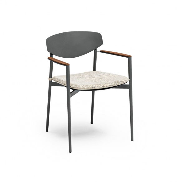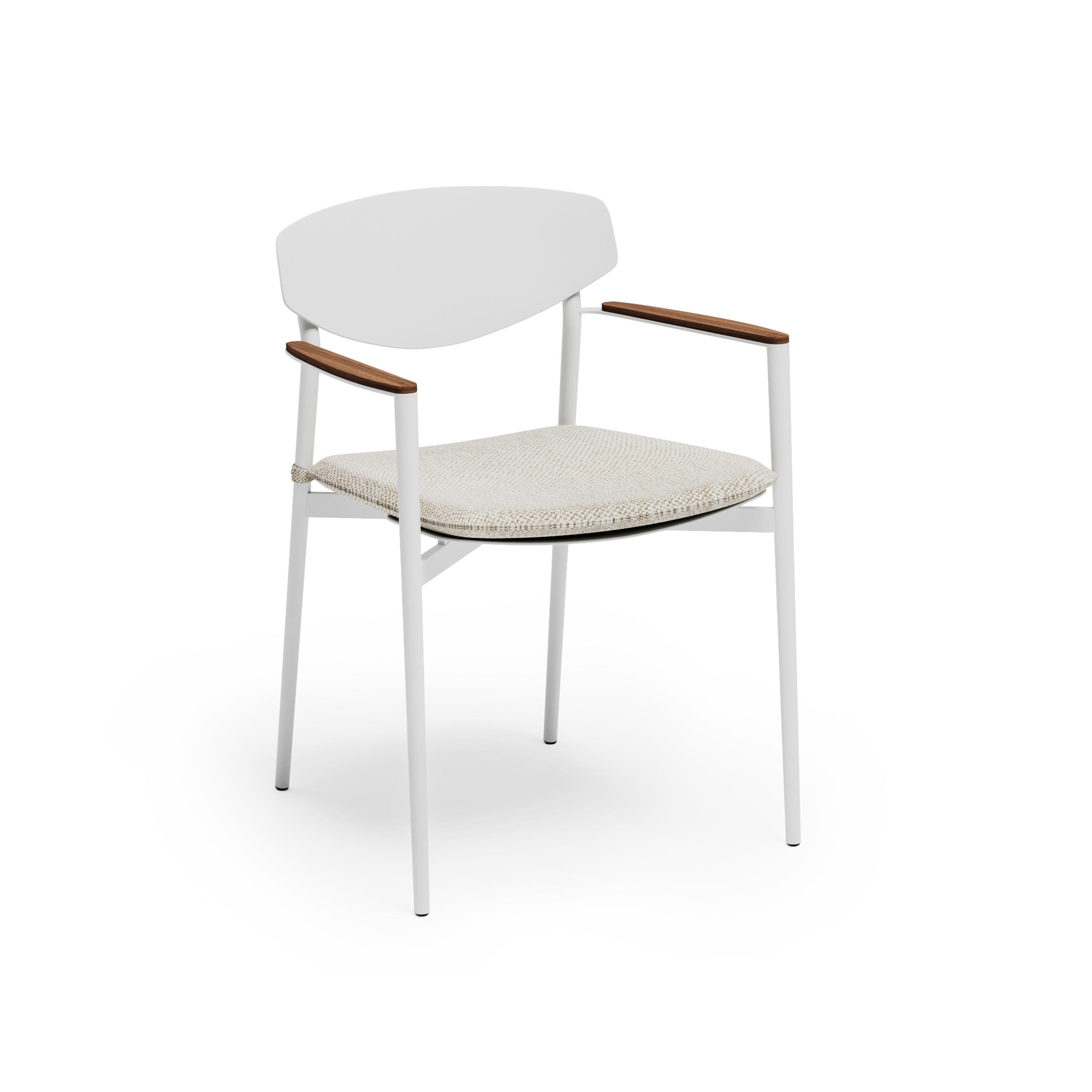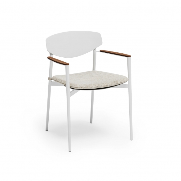 Sedia con braccioli outdoor Origami realizzata con scocca in alluminio, dettagli dei braccioli in teak e cuscino della seduta rivestito in tessuto outdoor. Origami rappresenta una fusione tra funzionalità e design all'avanguardia, ideale per chi ricerca stile e praticità nel proprio arredamento da giardino. Caratterizzata da una scocca robusta in alluminio, questa sedia si distingue per il loro design minimalista e contemporaneo, offrendo al tempo stesso un tocco di eleganza naturale grazie al dettaglio del bracciolo in teak naturale. La proposta Origami non è solo un’icona di stile, ma anche di praticità: la sua struttura impilabile rende le sedie comodamente riponibili, ottimizzando gli spazi esterni quando non in uso. Perfette per chi desidera abbellire il proprio spazio aperto senza rinunciare alla comodità e alla durabilità, le sedie Origami sono la scelta ideale per trasformare qualsiasi area esterna in un'oasi di pace e bellezza. Disegnata da Atmosphera Creative Lab.