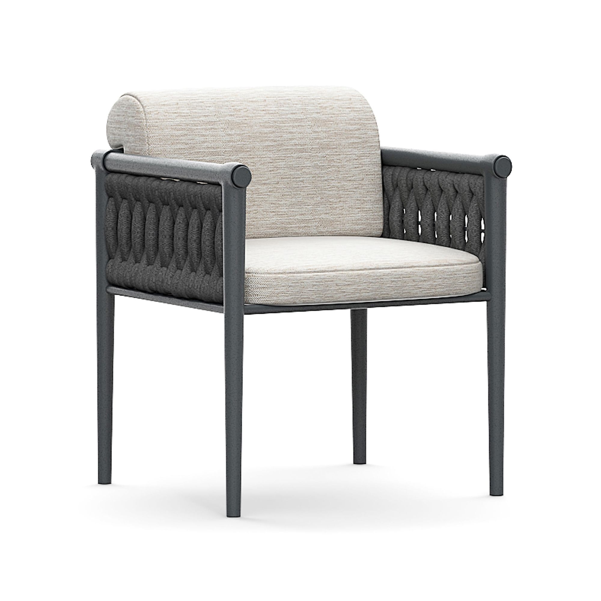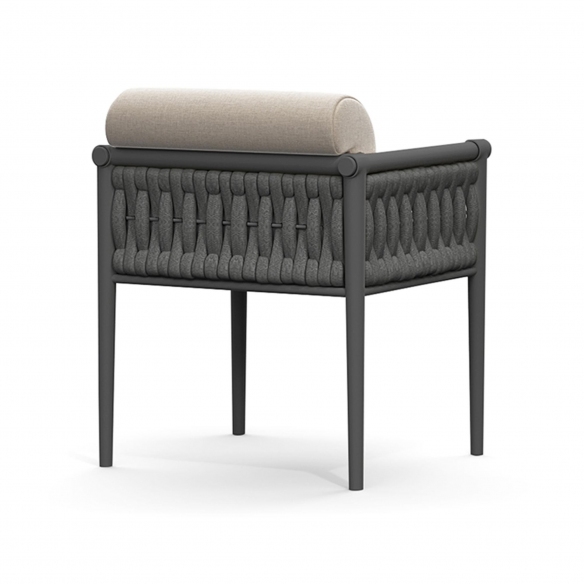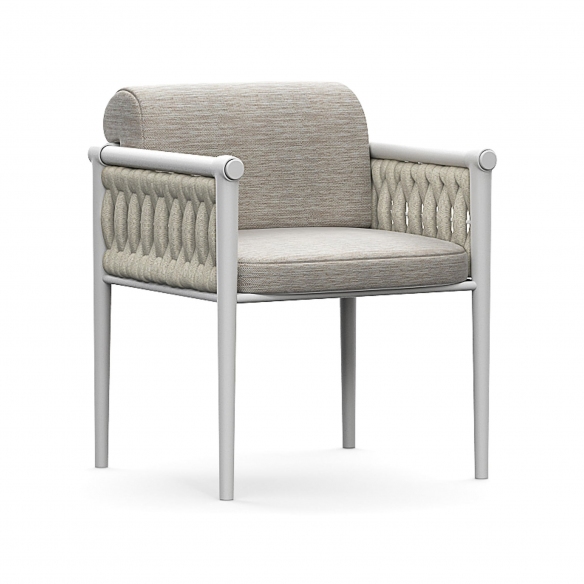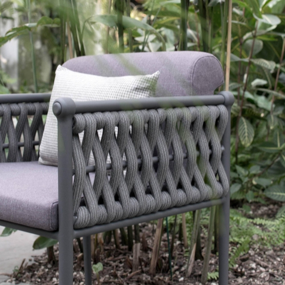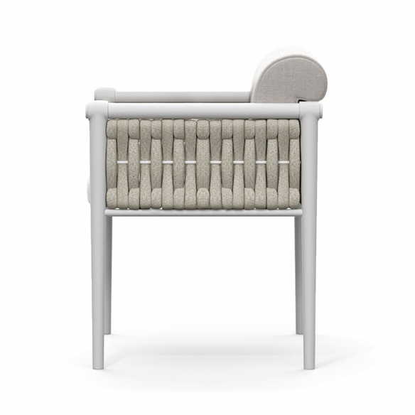 Sedia da esterno Dandy 3.0 realizzata con strtuttura in alluminio, pannelli laterali in corda nautica e cuscini della seduta e dello schienale rivestiti in tessuto outdoor. Disponibile in varie combinazioni di colori e tessuti, la poltrona outdoor Dandy 3.0 è un capolavoro di design che trascende l'ordinario, combinando funzionalità e un'estetica sofisticata. Come il nodo di una cravatta che simboleggia eleganza e distintività, la sedia Dandy incarna questo concetto con una struttura in alluminio leggera ma resistente, abilmente intrecciata con morbide corde che aggiungono un tocco di charme e confortevolezza. Questa seduta non è solo una componente d'arredo: è una dichiarazione di stile e culla di relax, perfetta per dare una nuova vita a spazi esterni come giardini, terrazze o portici. Scegli la sedia Dandy 2.0 per creare un angolo di puro piacere visivo e fisico, dove ogni momento di pausa si trasforma in un'esperienza di lusso all'insegna del riposo e del buon gusto. Disegnata da Atmosphera Creative Lab.