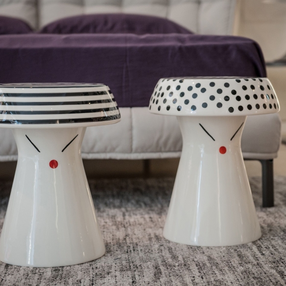 Holly è uno sgabello in ceramica di Caltagirone interamente fatto a mano dal design contemporaneo. Disponibile sia con decori a righe che pois aggiungerà un tocco di brio ad ogni ambiente. Disegnato da Andrea Branciforti per Improntabarre.