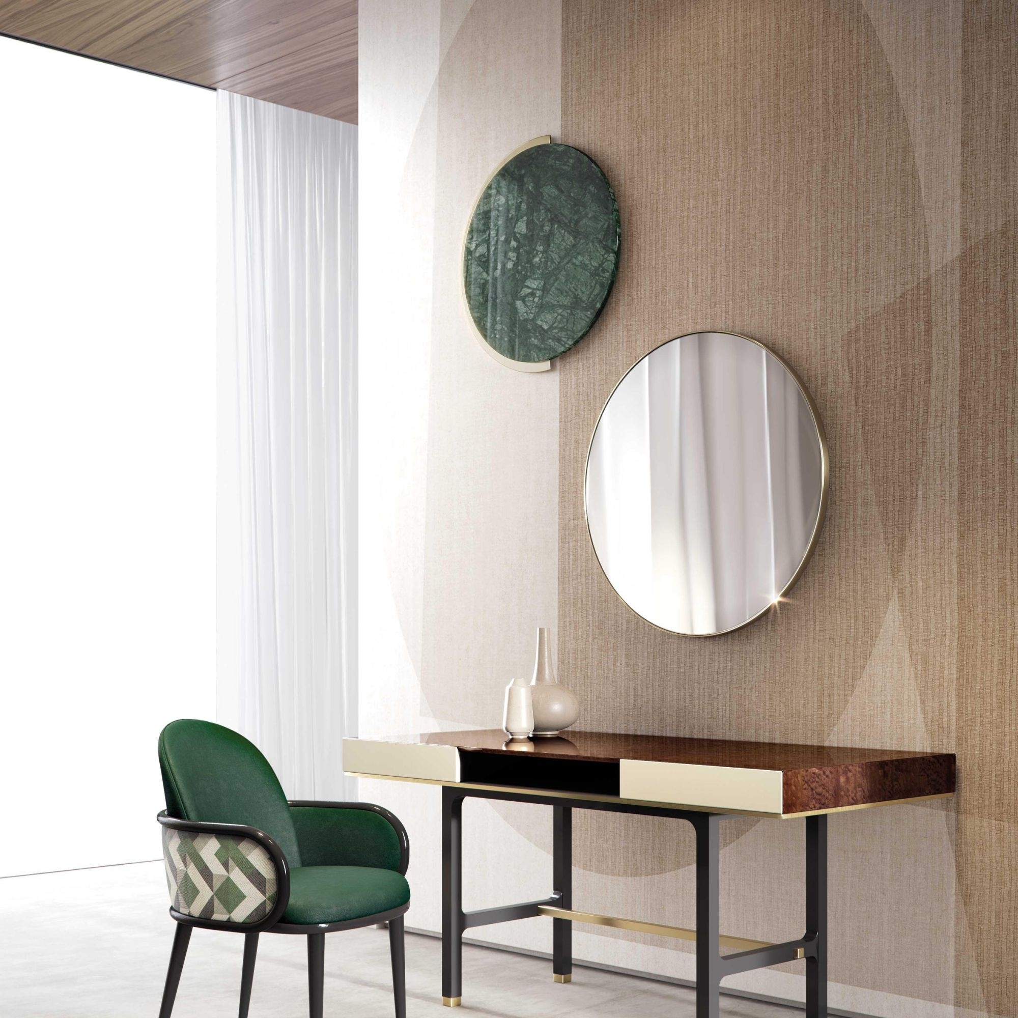 Lo specchio rotondo Trilogy è un meraviglioso prodotto di arredamento realizzato da Capital con un elegante cornice che accoglie un perimetro in bronzo che conferisce al pezzo un aspetto raffinato e lussuoso, mentre la forma circolare dona equilibrio e armonia visiva. Questo specchio dal design minimalista, si integra perfettamente a qualsiasi tipologia di contesto, donando profondità e ampiezza visiva agli spazi: è ideale per essere posizionato in zone di passaggio come l'ingresso o il corridoio, ma anche in stanze più intime come il bagno o la camera da letto, dove l'aggiunta di luce e la sensazione di maggiore spazio sono particolarmente apprezzate. Lo specchio rotondo Trilogy di Capital è più di uno specchio, è un elemento d’arredo che riflette gusto, classe e un esclusivo senso del design.