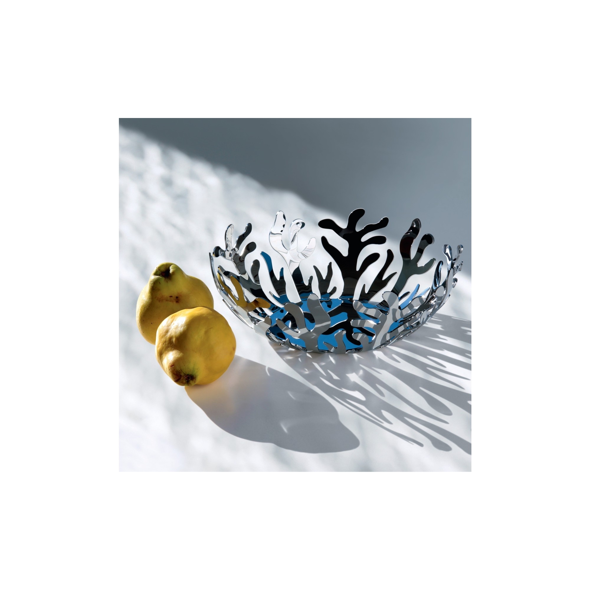 Fruttiera Mediterraneo realizzata in acciaio inossidabile 18/10. È caratterizzata da un decoro che si ispira ai fondali marini, mentre la lucentezza dell’acciaio la rende adattabile a qualsiasi tipo di apparecchiatura. Lavabile in lavastoviglie. Fruttiera Mediterraneo è il mix perfetto di raffinatezza e praticità. Disegnate da Emma Silvestris per Alessi.