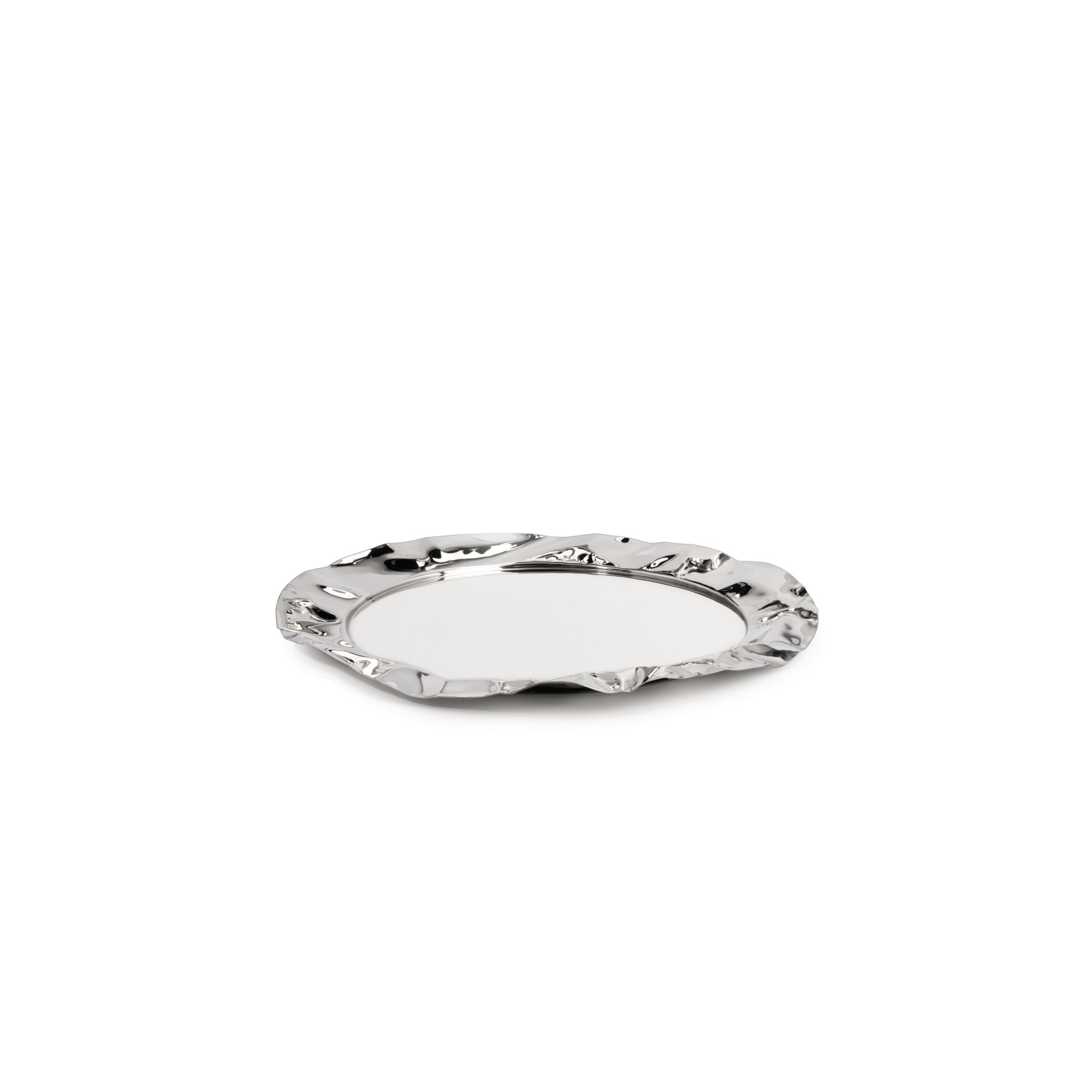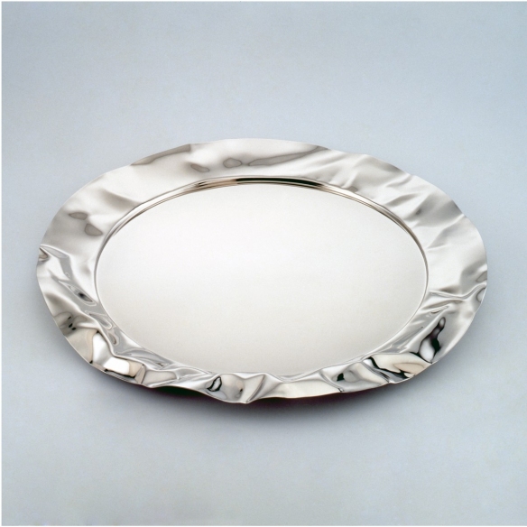 Vassoio rotondo Foix realizzato in acciaio inossidabile 18/10. Molto particolare ed elegante, questo vassoio è ottenuto con la complessa tecnica dello stampaggio a freddo in una sola operazione. I bordi increspati sono la particolarità del vassoio Foix, dotato di forte valenza decorativa. Disegnato da Lluís Clotet per Alessi.