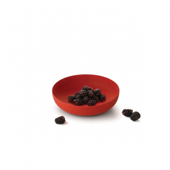 Cestino rotondo JM17 dal diametro di 21 cm realizzato in acciaio colorato con resina epossidica e decoro a rilievo. Disponibile nei colori rosso o nero, questo splendido cestino è perfetto per presentare frutta, cereali, legumi e quant'altro con stile ed eleganza. Elegante e compatto, il cestino JM17 è l'accessorio immancabile nella tua tavola! Disegnato da Jasper Morrison per Alessi.
