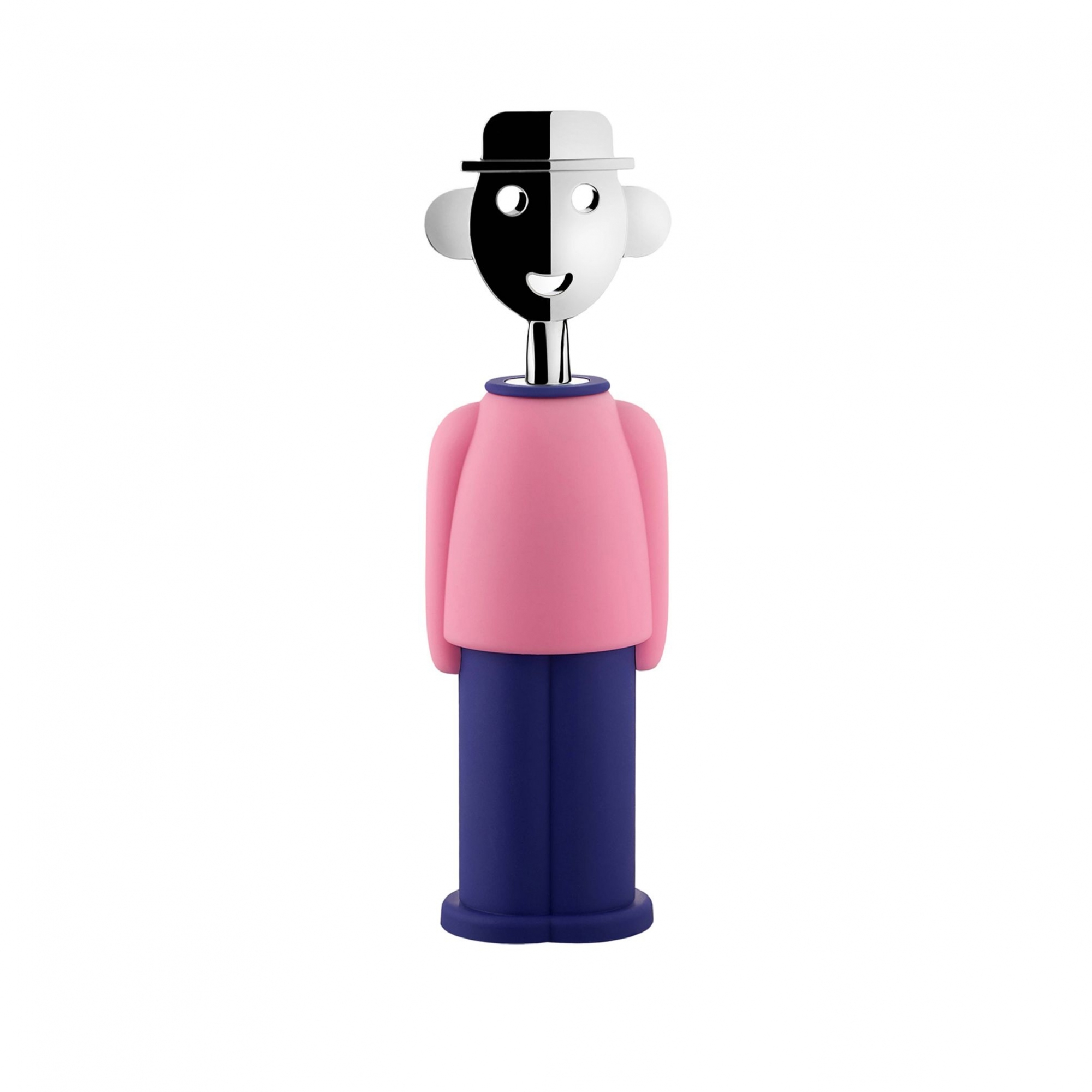 Cavatappi in resina termoplastica e zama cromata. Disegnato da Alessandro Mendini per Alessi.