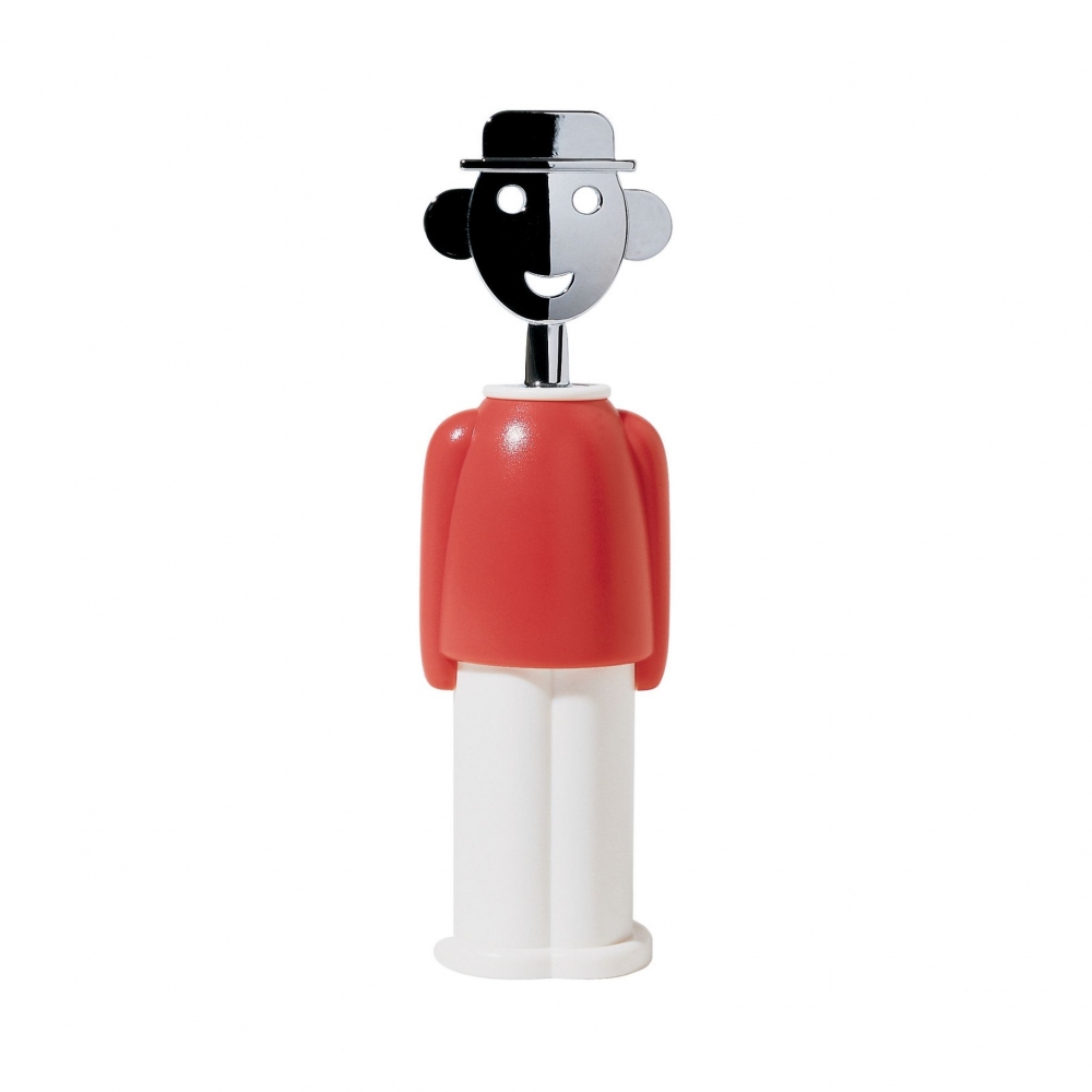 Cavatappi in resina termoplastica e zama cromata. Disegnato da Alessandro Mendini per Alessi.