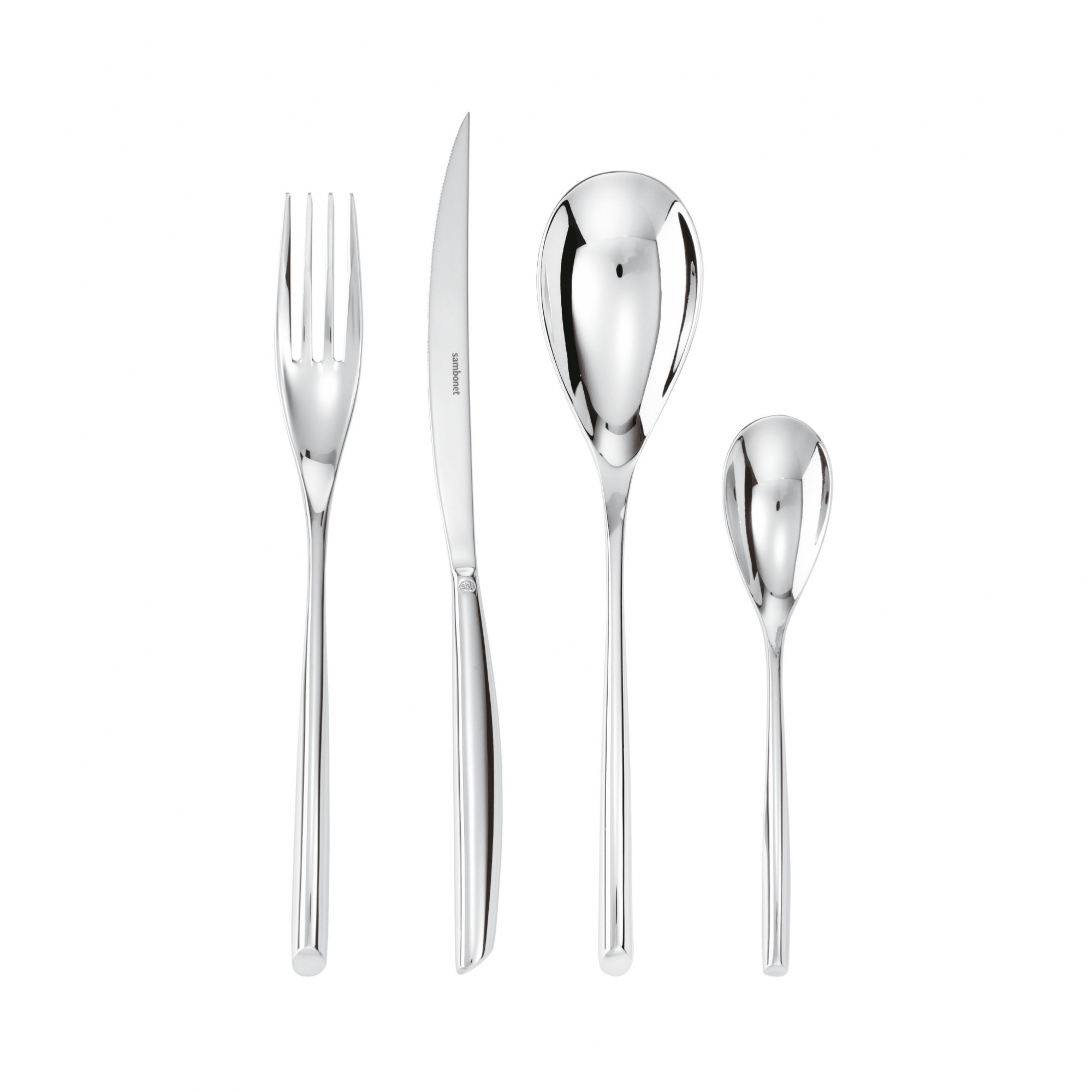 Servizio composto da 24 posate disegnate dal centro stile Sambonet. La caratteristica principale di ogni posata è la sezione ovale che rende questo servizio moderno ma al tempo stesso ripropone il design in pieno stile anni '40.