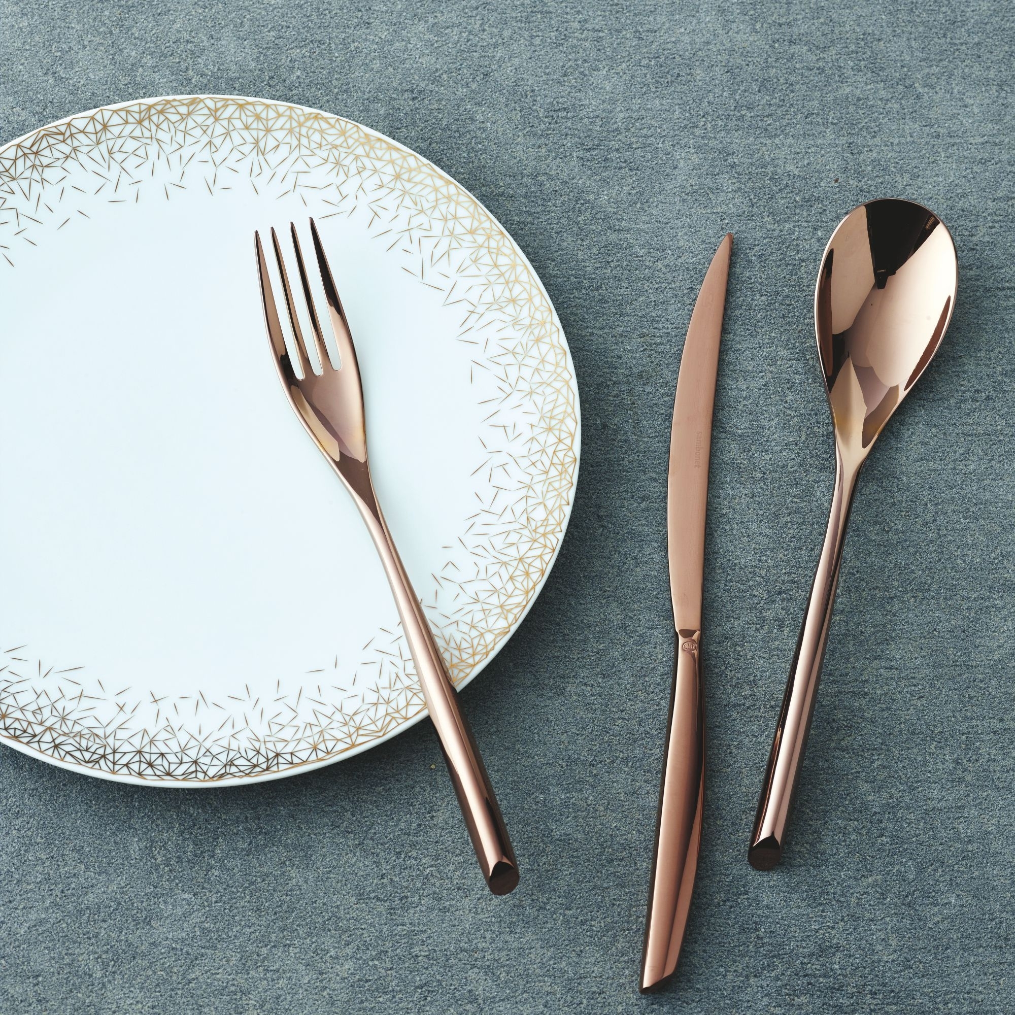 Disponibili in acciaio, rame o oro, le posate Bamboo riescono a combinare perfettamente funzionalità, eleganza e solidità. La caratteristica principale è la sezione ovale, che ripropone il design organico in stile anni '40. Progettate e realizzate da Sambonet.