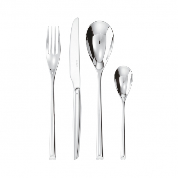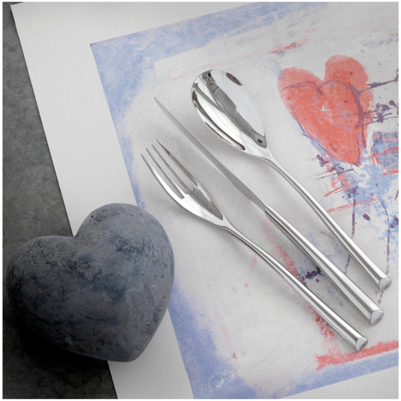 Servizio di 24 posate dal design romantico. la sua caratteristica sta nella sezione del manico a forma di cuore. una collezione dalle linee essenziali sviluppata dal Centro Stile Sambonet
