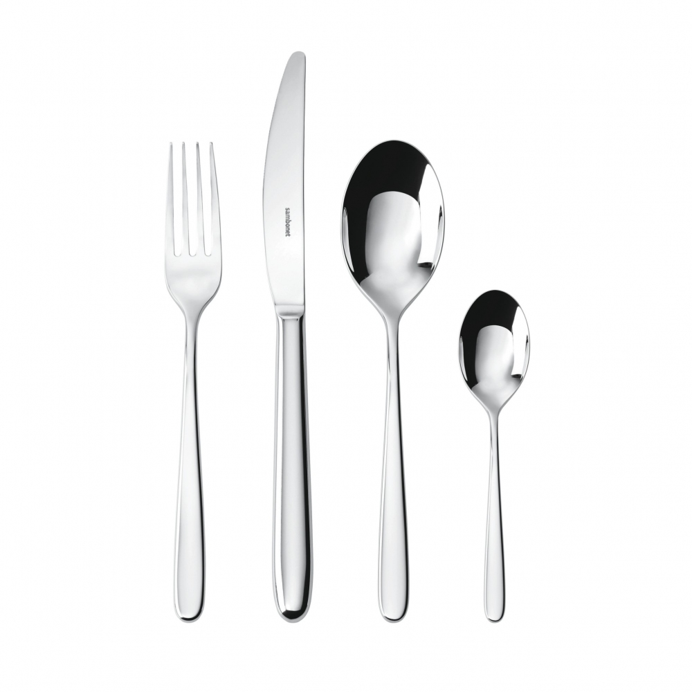 Servizio da 24 posate in acciaio inox che nel 1994 è stata premiata dal prestigioso Compasso D'oro. Disegnate da Anna Castelli Ferrieri per Sambonet.