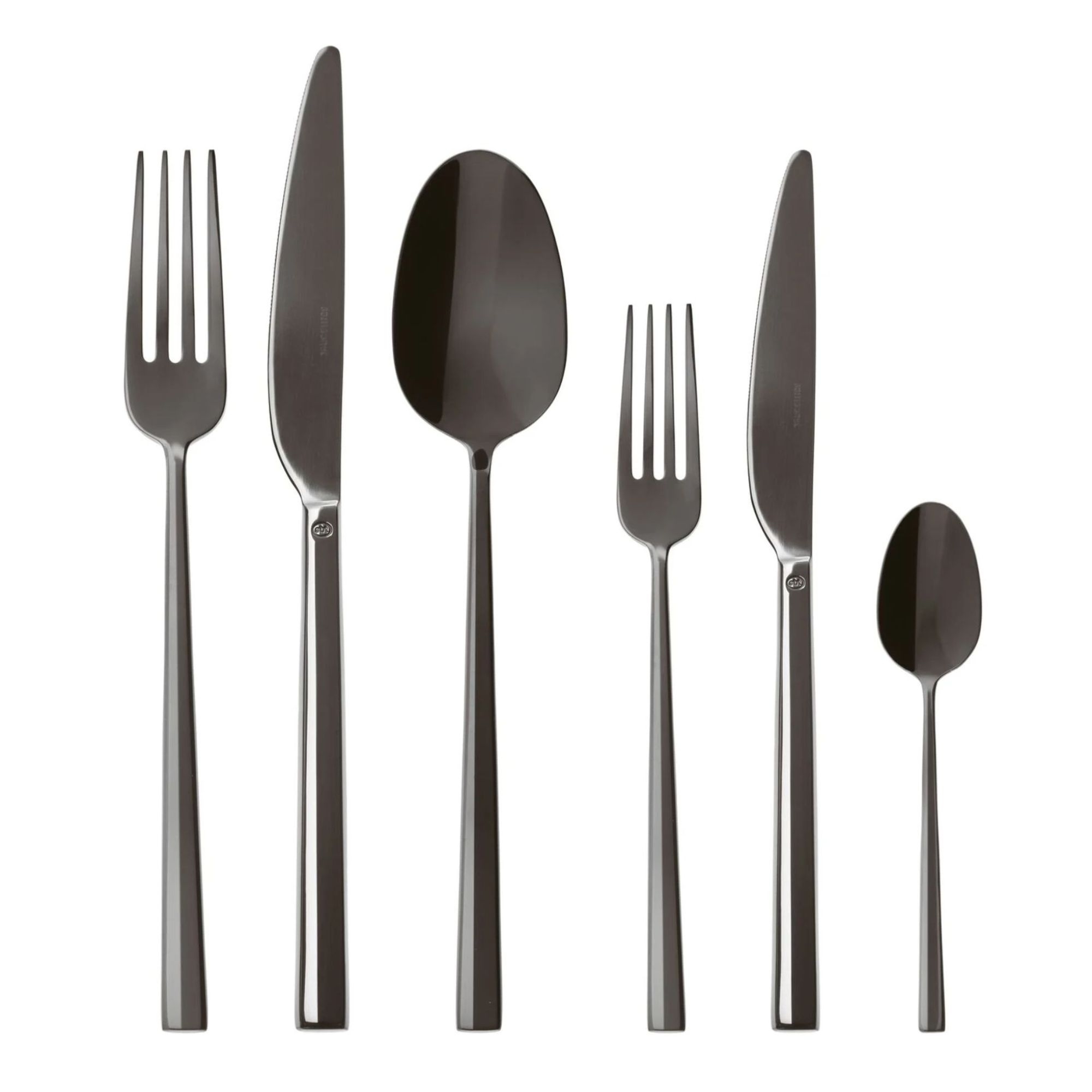 Posate in acciaio inox di alta qualità firmate Sambonet, dal design ricercato, dalle linee squadrate e dall'elevato spessore dell'acciaio aggiungno stile e grinta alla tavola. Il servizio è composto da 6 forchette tavola, 6 cucchiai tavola, 6 coltelli tavola, 6 forchette dolce, 6 coltelli frutta e 6 cucchiaini tè.