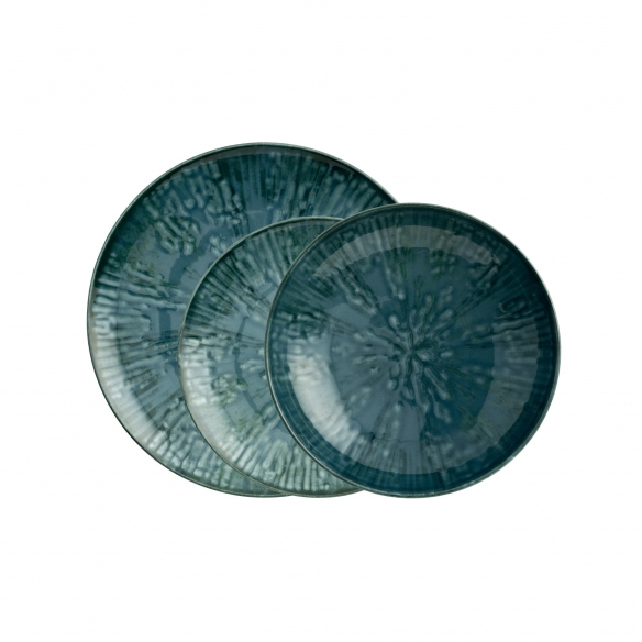Dimensioni: Piatto fondo diam. 22 cm, Piatto piano diam. 28 cm, Piatto frutta diam. 20 cm