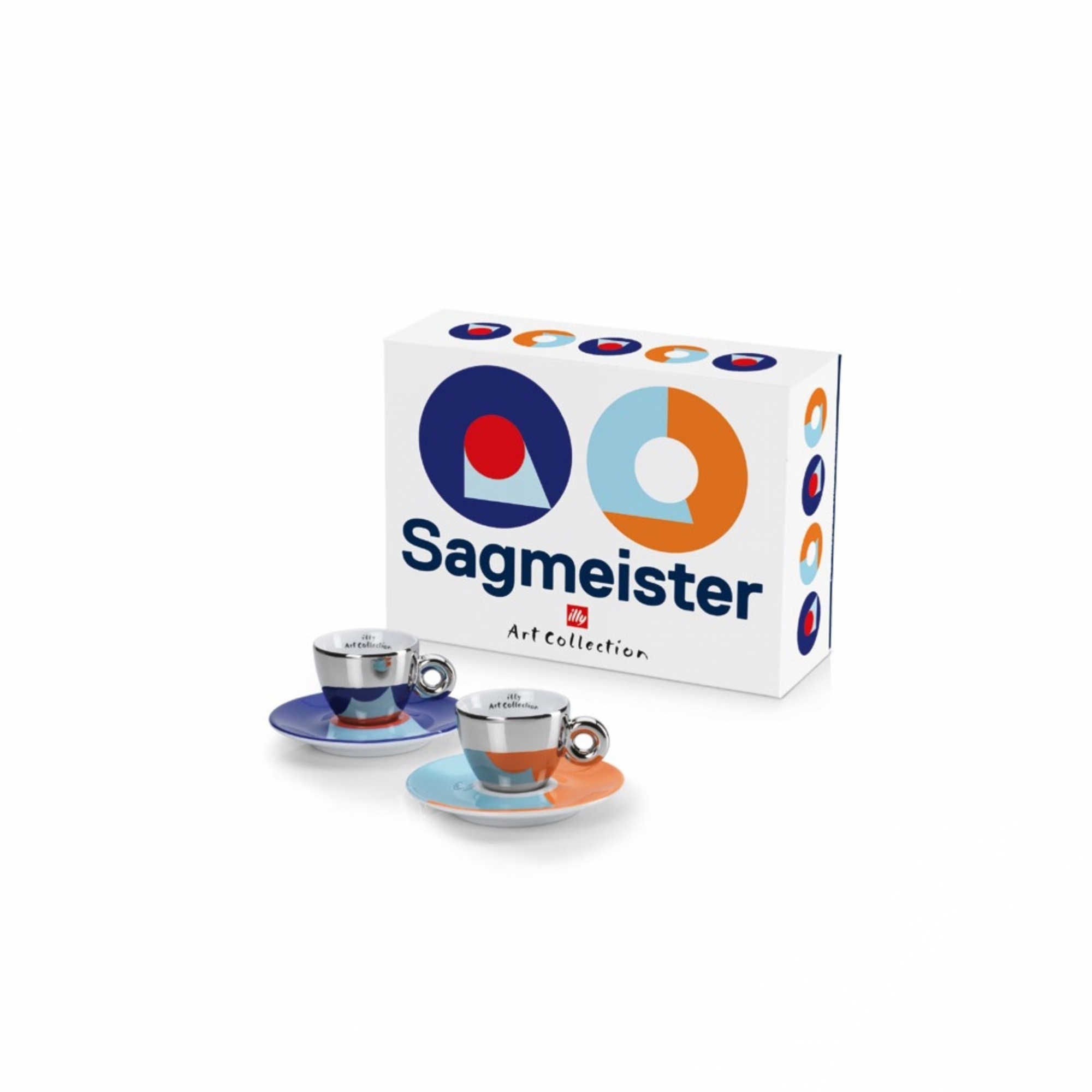 Set composto da 2 tazzine espresso appartenenti alla nuova coloratissima collection, impreziosita dal titanio e da pregiati minerali utilizzati per il decoro. disegnate da Stefan Sagmeister per Illy