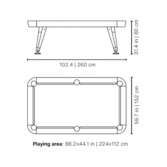 Il tavolo da biliardo Diagonal Indoor (8 ft American) trasforma ogni spazio della tua casa in una sala da giochi unica e inimitabile; realizzato da RS Barcelona con struttura in acciaio verniciato, tessuto Simonis 860, la tavola in fibrocemento compatto spesso 20 mm, gambe in acciaio verniciato, legno di Iroko, rovere e noce, e infine il cuscino in gomma premium K-66, il tavolo da biliardo Diagonal Indoor assicura divertimento, longevità e resistenza. Disponibile in varie combinazioni, il tavolo da biliardo Diagonal Indoor è facilmente abbinabile a ogni stile di arredamento e ambientazione: che sia posizionato all'interno di un grande salotto dal design classico, oppure in una sala giochi all'avanguardia, Diagonal stupirà tutti i tuoi ospiti e ti regalerà momenti indimenticabili di convivialità e sfida. Inoltre, il design di questo tavolo da biliardo è particolare, grazie alle sue gambe inclinate che non solo conferiscono al tavolo un aspetto contemporaneo, ma garantiscono stabilità e sicurezza durante il gioco. Cosa stai aspettando? Corri ad acquistare questo bellissimo tavolo da biliardo Diagonal Indoor (8 ft American) su Newpop.it! Invita i tuoi amici e godetevi il gioco senza rinunciare al design. Progettato da Yonoh Studio per RS Barcelona.