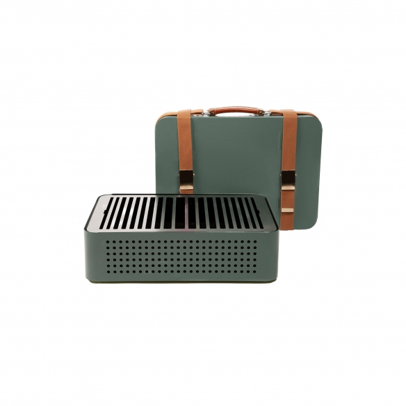 Il barbecue portatile Mon Oncle trasforma l'esperienza della grigliata in un momento unico e indimenticabile; realizzato da RS Barcelona con la struttura in acciaio verniciato, griglia e vassoio interno in acciaio inossidabile e cinghia in Nylon con maniglia in pelle, il barbecue Mon Oncle assicura durabilità, innovazione ed estetica inimitabile. Disponibile in tre bellissime combinazioni, questo barbecue portatile chiuso è una valigetta vintage che al suo interno ha la sorpresa della griglia funzionale e resistente. Inoltre, è facilmente abbinabile a ogni stile di arredamento e ambientazione: che sia posizionato in un giardino, in una veranda dal design moderno, oppure sul terrazzo, Mon Oncle catturerà lo sguardo degli ospiti, invitando alla conversazione durante cene e pranzi. Ideale per tutti coloro che amano le grigliate senza rinunciare al design, i barbecue Mon Oncle è anche semplice da smontare e lavabile in lavastoviglie, diventando così il compagno perfetto per picnic, cene con la propria anima gemella o col gruppo di amici e parenti. L'intera struttura ha dei piccoli fori progettati non solo per scopi estetici, ma anche per aumentare il flusso d'aria, generando così più calore e potenza e assicurando che la struttura non si surriscaldi. Si consiglia di utilizzare il carbone di cocco biologico: non c'è fiamma, trattiene il calore a lungo e genera pochissimo fumo. Progettato da Marmelada Studio per RS Barcelona.