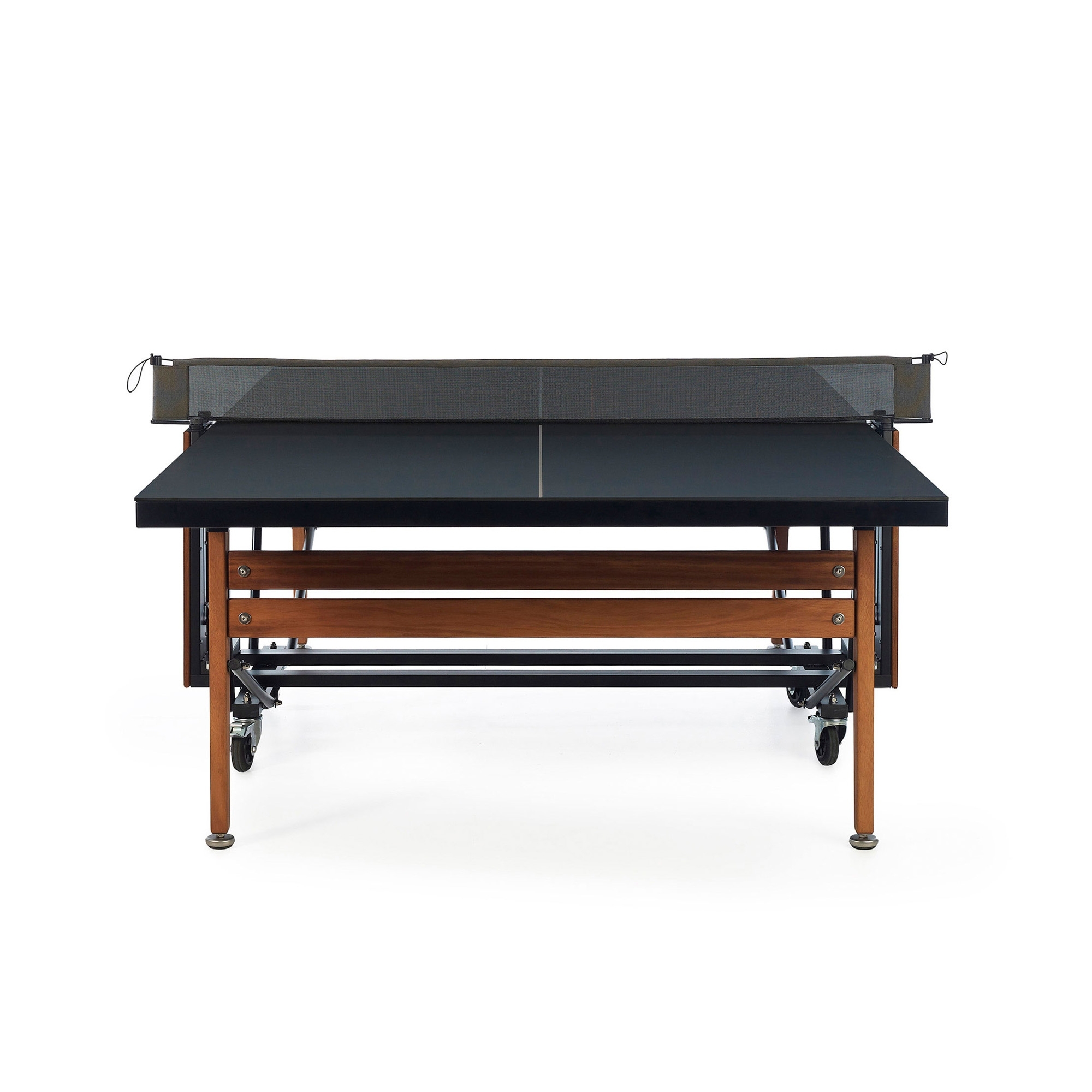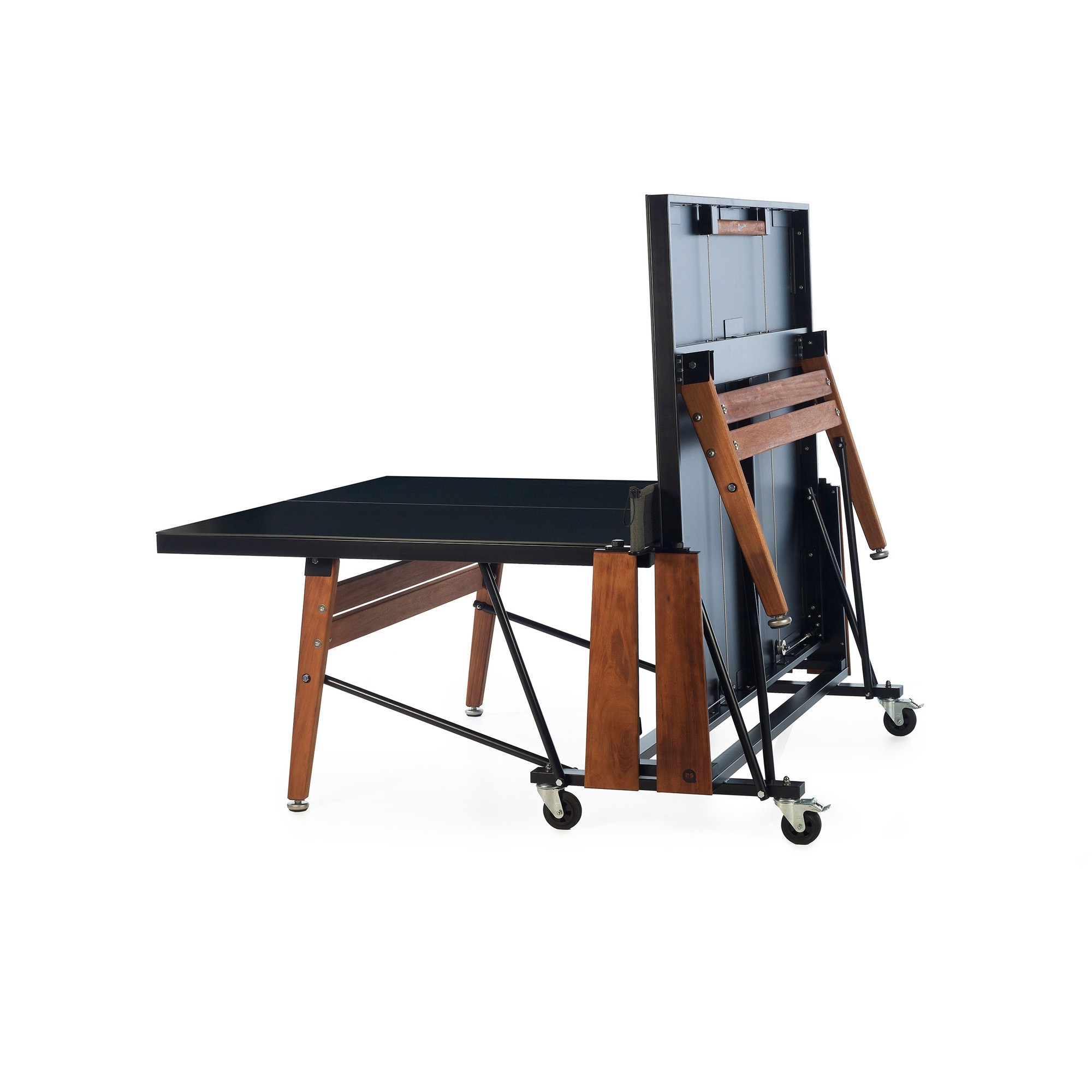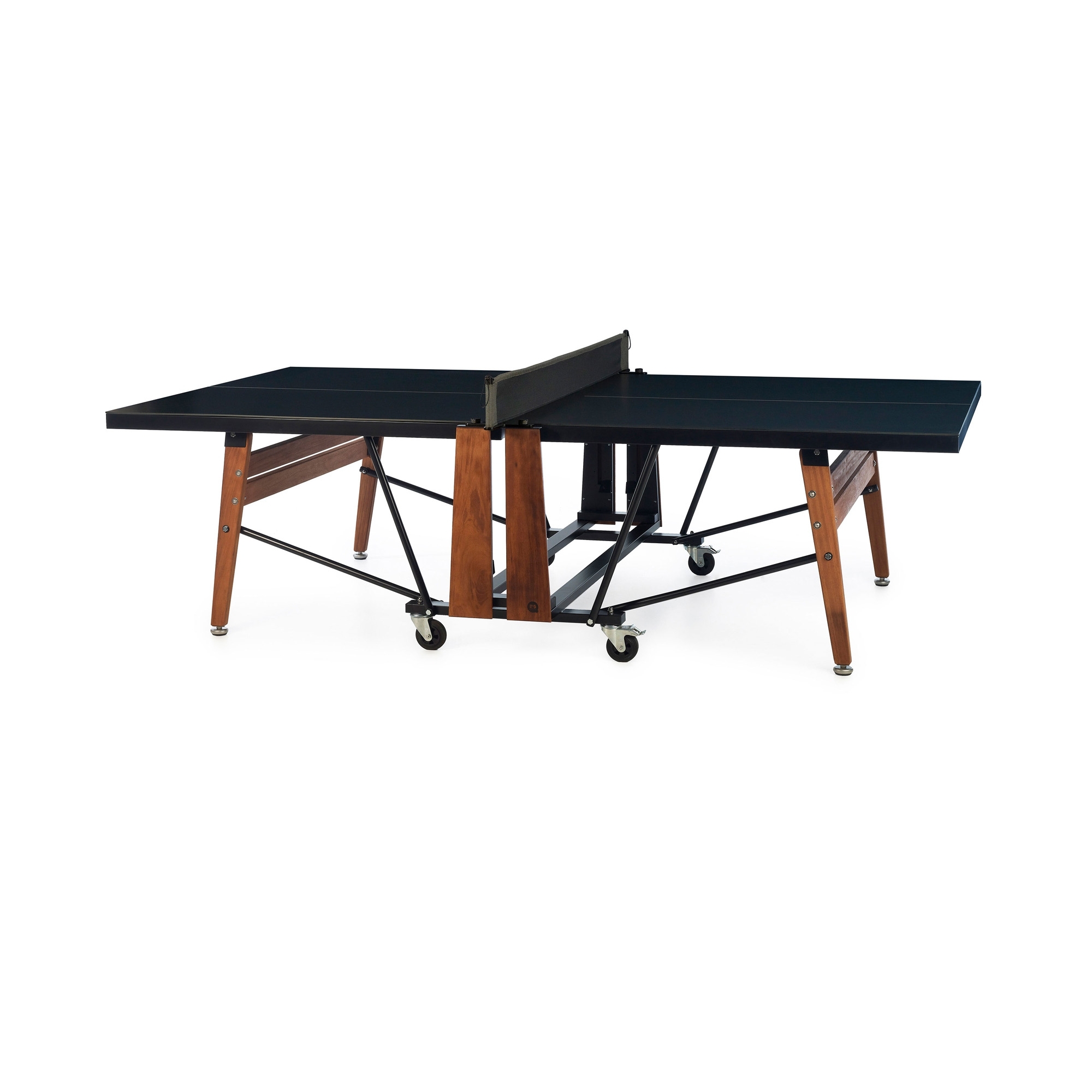 Il tavolo da ping pong pieghevole RS è un favoloso accessorio che migliorerà le serate con gli amici; realizzato da RS Barcelona con struttura in acciaio con processo di rivestimento cataforetico e vernice poliestere micro testurizzata a polvere, piano in HPL, gambe in legno di Iroko e rete in tessuto di poliestere, il tavolo da ping pong pieghevole RS garantisce resistenza, longevità e innovazione. Disponibile in due bellissime combinazioni, questo tavolo da ping pong è un pezzo di arredo versatile ed elegante che si abbina armoniosamente in ogni ambientazione: che sia collocato fuori in giardino, all'interno di una sala giochi domestica oppure in terrazza, RS pieghevole rimane discretamente nascosto finché non viene chiamato in azione, rivelando tutto il suo fascino. Inoltre, grazie ai materiali di alta qualità e alle ruote, questo tavolino da ping pong può essere spostato facilmente nel punto più comodo della tua casa a seconda delle tue necessità. Il tavolo da ping pong pieghevole RS è un invito a condividere momenti di allegria, un pezzo di design che stimola lo spirito di squadra e la sana competizione. Progettato da Rafael Rodríguez per RS Barcelona.