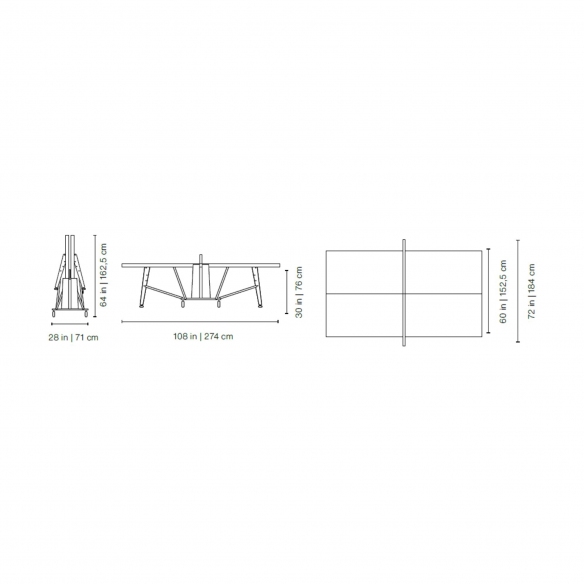 Dimensioni: Lunghezza 274 cm, Profondità 184 cm, Altezza tavolo chiuso 162,5 cm, Altezza tavolo aperto 76 cm