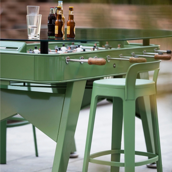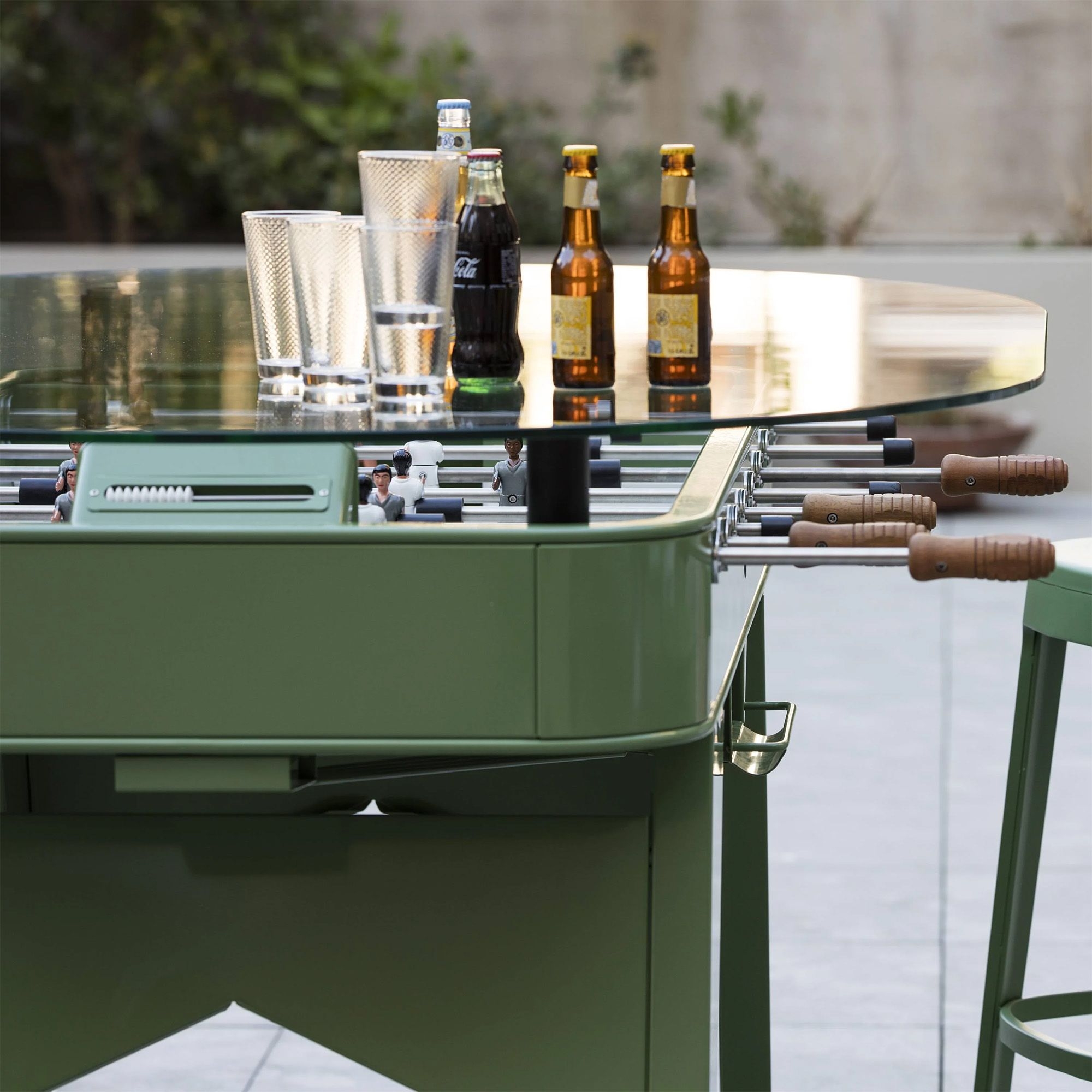 Il tavolo calciobalilla indoor RS2 è simbolo di design particolare e speciale; realizzato da RS Barcelona con struttura in acciaio e vernice poliestere micro testurizzata verniciata a polvere, maniglie in legno di Iroko, campo in HPL e giocatori in alluminio, RS2 indoor è stato progettato con ingegno e fantasia. Disponibile in varie colorazioni, il tavolo calciobalilla RS2 si abbina armoniosamente a tutti gli stili e le ambientazioni: che si tratti di un bar, di un'area comune di un posto di lavoro, di una sala giochi di un'abitazione privata o di un portico, è un tavolo che sarà sempre al centro dell'attenzione. Grazie alle sue dimensioni, questo tavolo indoor offre spazio per far giocare 4 persone, ideale per feste, cene, pomeriggi in piscina o semplici momenti di condivisione quotidiana. Inoltre, RS2 indoor è personalizzabile: puoi scegliere le tue squadre preferite, il colore del campo, decidere se avere giocatori maschi, femmine, squadre miste, il colore della loro pelle, se avere giocatori a gambe unite o aperte; insomma, il tavolo calciobalilla indoor RS2 è il connubio perfetto di innovazione, funzionalità e divertimento. Progettato da Rafael Rodríguez per RS Barcelona.