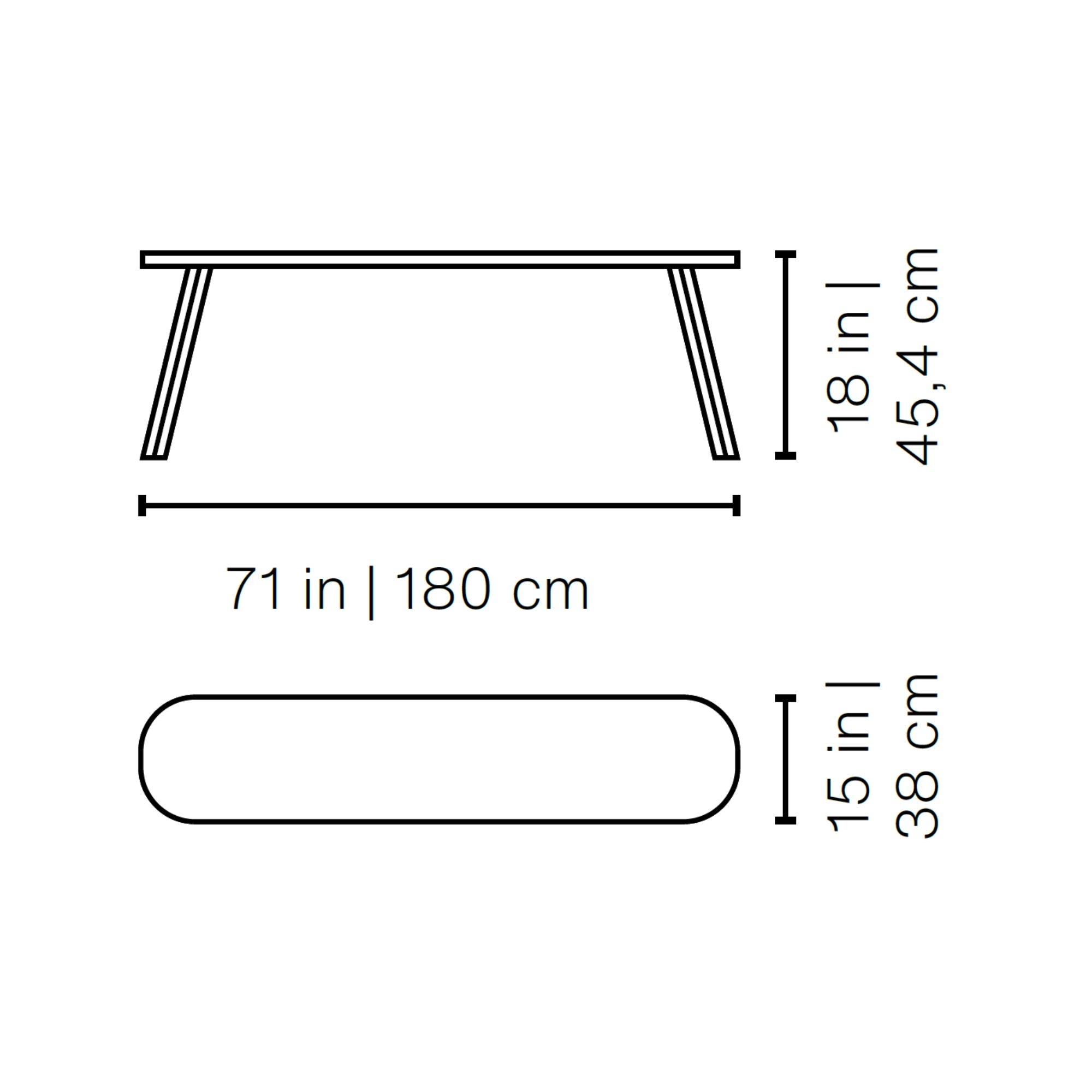 Dimensioni: Lunghezza 180 cm, Profondità 38 cm, Altezza 45,4 cm