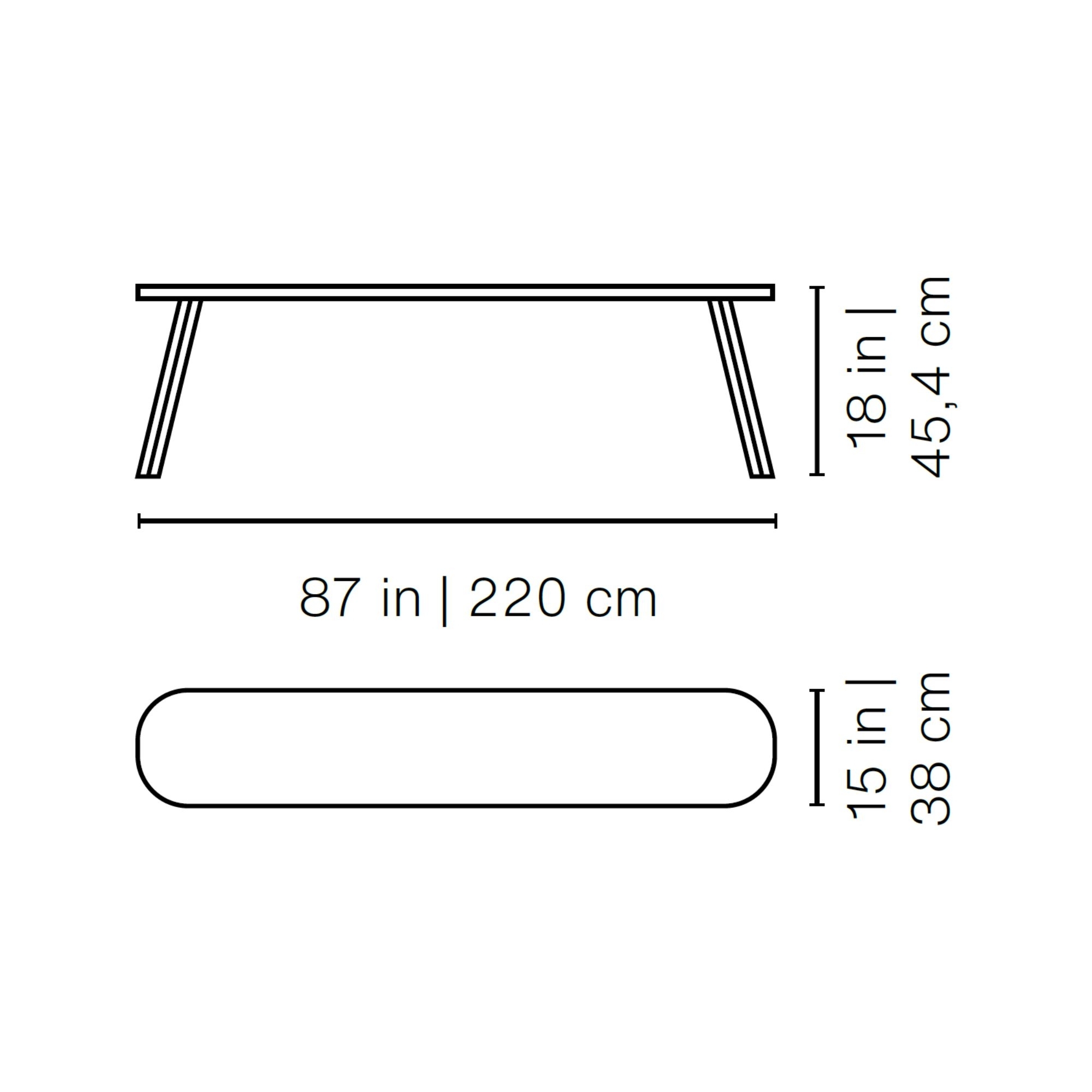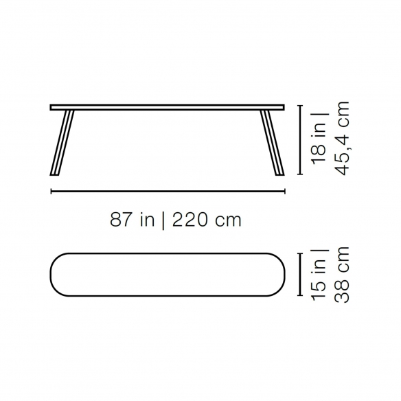 Dimensioni: Lunghezza 220 cm, Profondità 38 cm, Altezza 45,4 cm