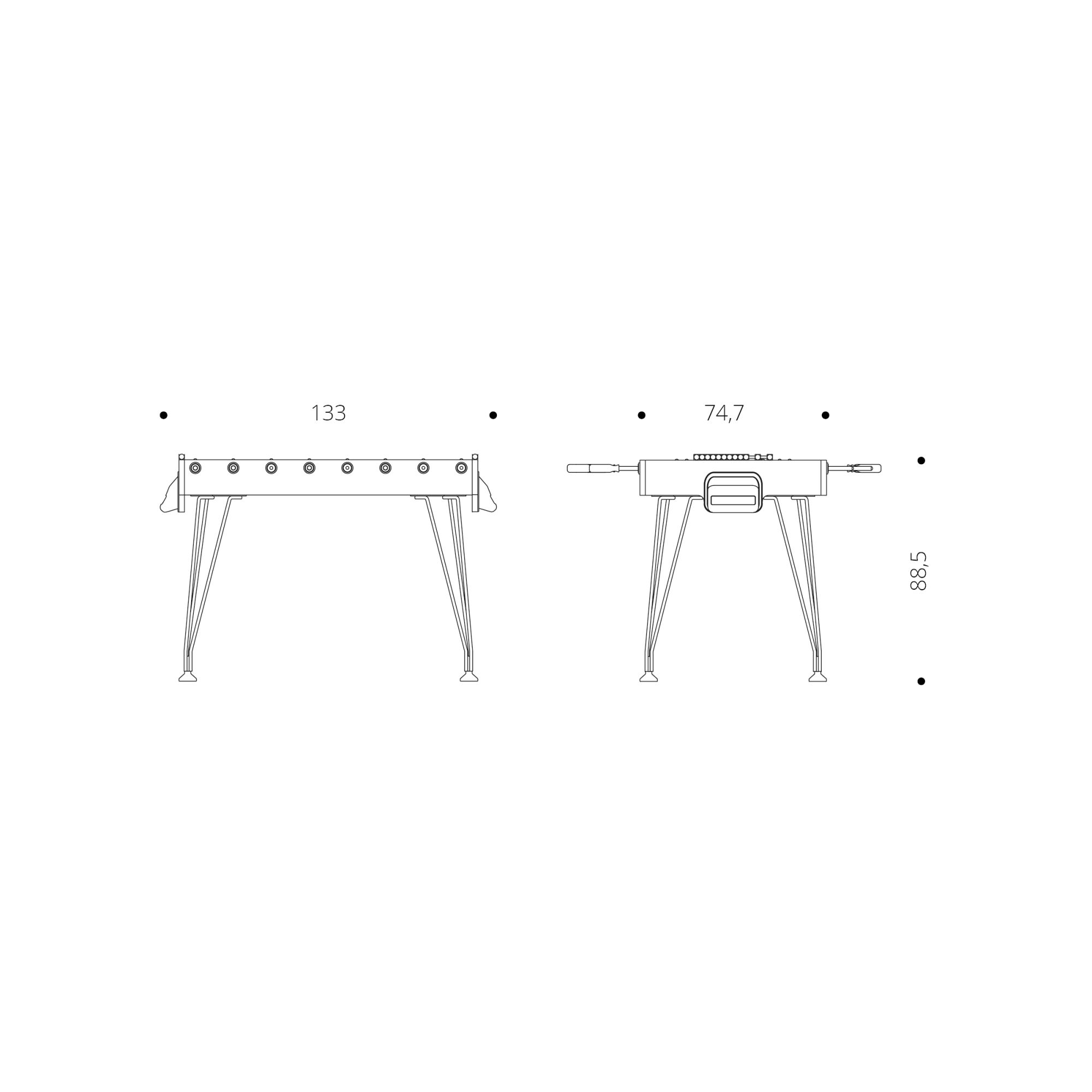 Il calciobalilla Apollo 20 è un fantastico oggetto di design e di divertimento realizzato da FAS Pendezza in legno per esterno spesso 22 mm ricoperto in laminato plastico, gambe in tondino metallico dal diametro di 12 mm con verniciatura antigraffio e campo di gioco in vetro temperato serigrafato ad alta resistenza. Questo calciobalilla è ispirato al primo viaggio dell’uomo sulla luna, ed è perfetto per giocare all'aperto. Disponibile nelle colorazioni bianco, rosso e nero, Apollo 20 può essere collocato in qualsiasi spazio della tua casa oppure in zone pubbliche: che sia collocato in una sala giochi, in giardino o in terrazza, la sua presenza è fresca ed elegante. Inoltre, le aste possono essere telescopiche oppure passanti, pensate per offrire una movimentazione fluida e sicura. Il calciobalilla è snello e stabile allo stesso tempo, ideale per scatenarsi con sfide accattivanti. Sono incluse 5 palline bianche. Disegnato da Basaglia e Rota Nodari per FAS Pendezza.