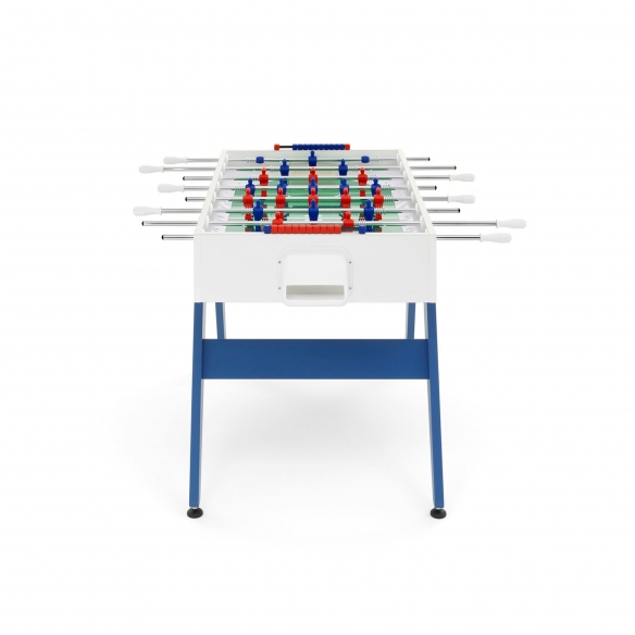 Il calciobalilla Cross è un fantastico oggetto di design e di divertimento realizzato da FAS Pendezza in MDF spesso 22 mm ricoperto in laminato plastico, gambe in multistrato di betulla verniciato 30 mm, e campo di gioco in vetro temperato alta resistenza. Questo calciobalilla ha un design contemporaneo apprezzato per le sue linee essenziali, che ricordano un design classico e allo stesso tempo intramontabile. Disponibile nelle colorazioni rossa e blu, Cross è ricerca ed eleganza, e può essere collocato in qualsiasi spazio della tua casa oppure in zone pubbliche: che sia collocato in una sala giochi, in salotto o in pub chic, la sua presenza è fresca ed elegante. Inoltre, le aste possono essere telescopiche oppure passanti, pensate per offrire una movimentazione fluida e sicura. Il calciobalilla è snello e stabile allo stesso tempo, ideale per scatenarsi con sfide accattivanti. Sono incluse 5 palline bianche. Disegnato da Basaglia e Rota Nodari per FAS Pendezza.
