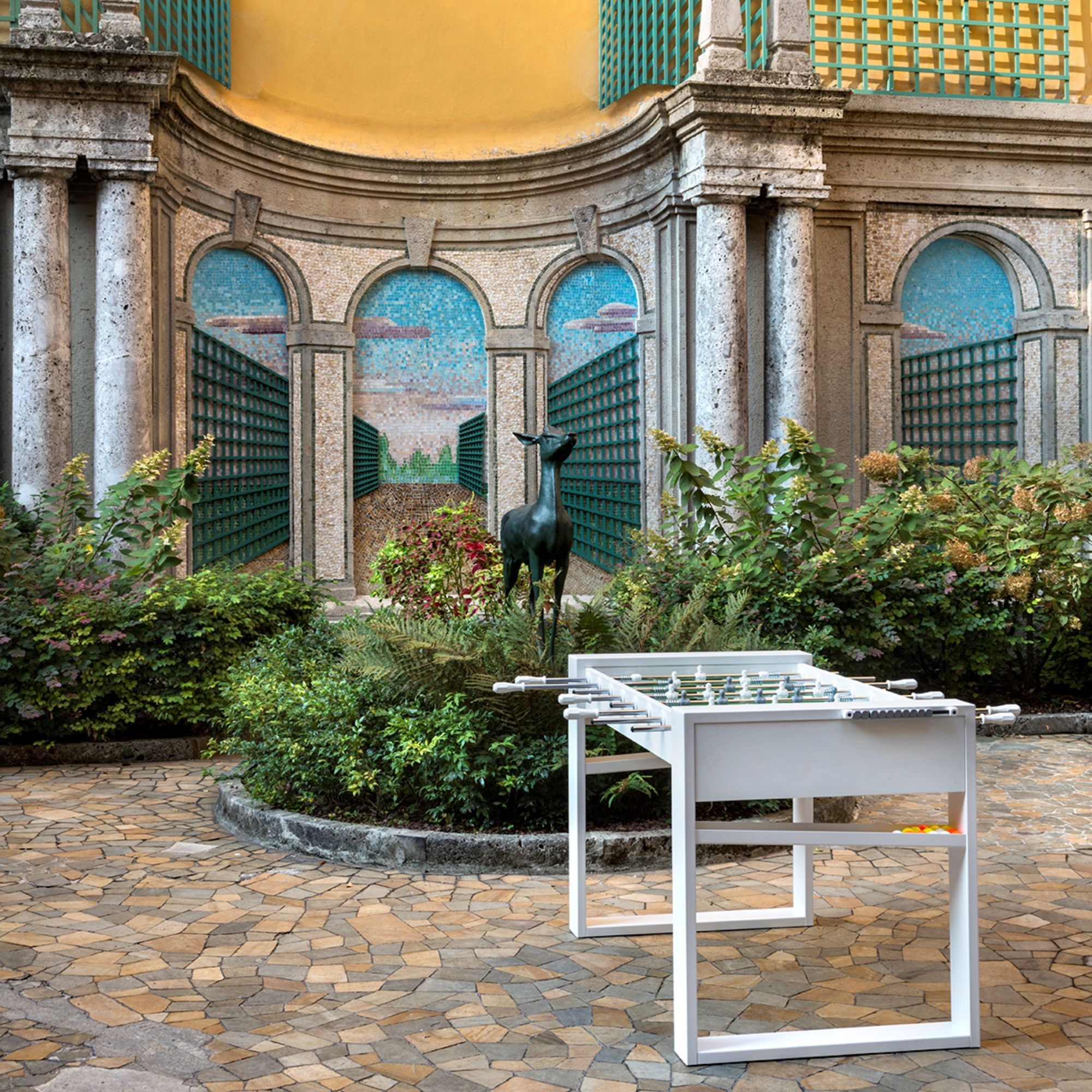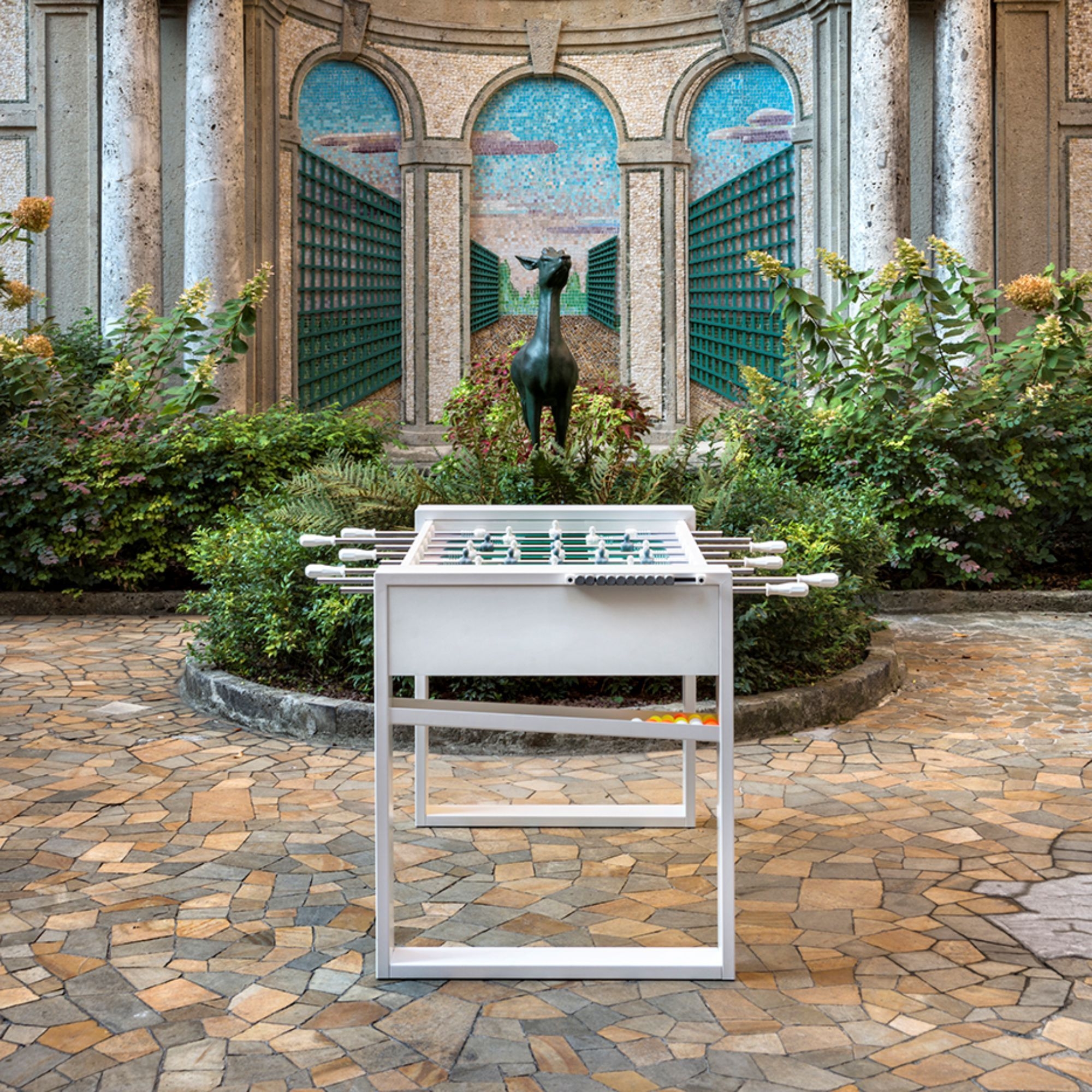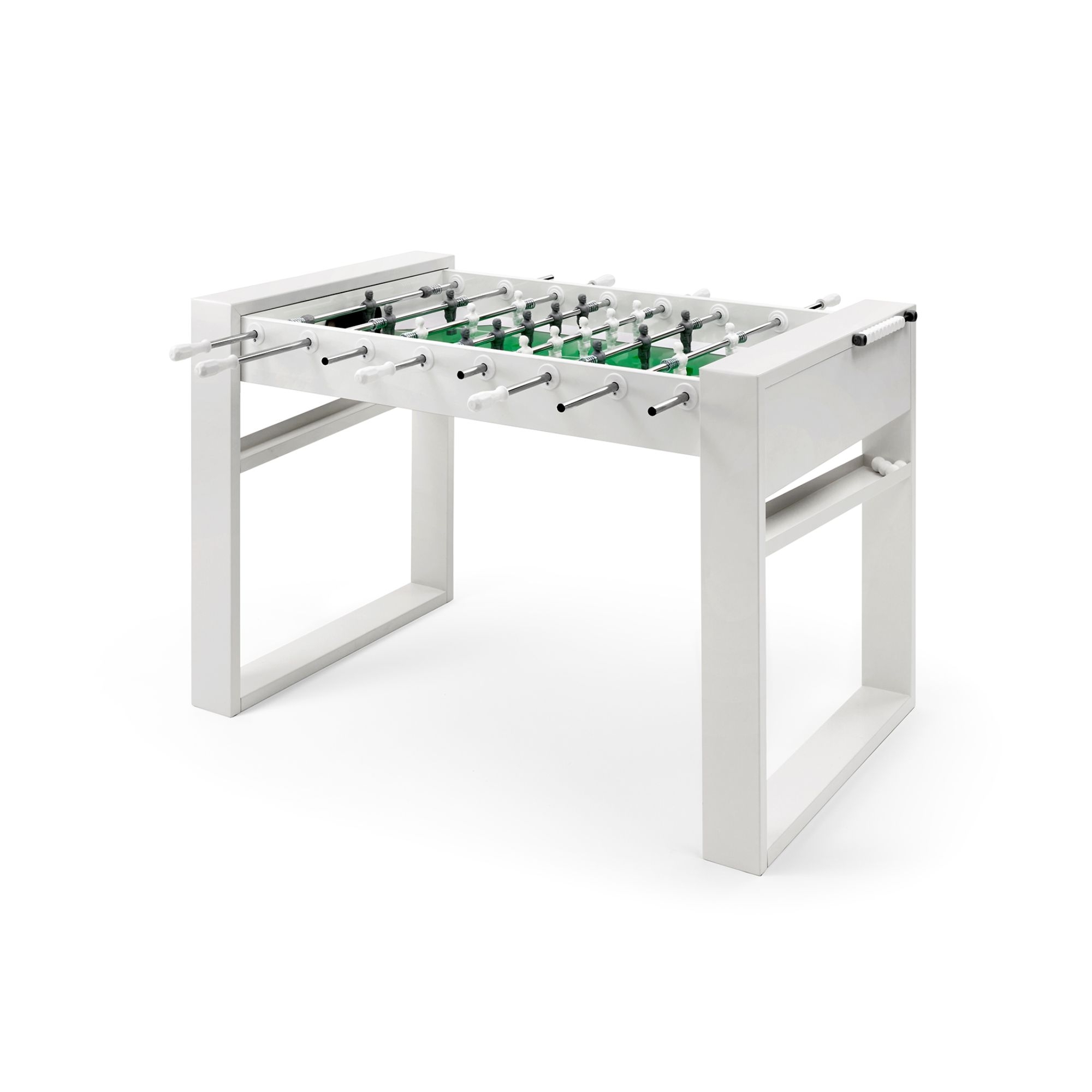 Il calciobalilla Tour ’65 è un fantastico oggetto di design e di divertimento realizzato da FAS Pendezza in legno spesso 22 mm ricoperto in laminato plastico, gambe in scatolare metallico 120 x 30 mm e campo di gioco in vetro temperato alta resistenza. Questo calciobalilla ha un design rigoroso che comunica stabilità ed eleganza. Disponibile nelle colorazioni rossa, bianca e nera, Tour ’65 è ricerca ed eleganza, e può essere collocato in qualsiasi spazio della tua casa oppure in zone pubbliche: che sia collocato in una sala giochi, in salotto o in pub chic, la sua presenza è fresca ed elegante. Si caratterizza per il futuristico sistema di recupero della pallina; è il primo realizzato con la boccola innovativa che si fissa con una sola vite. Inoltre, le aste possono essere telescopiche oppure passanti, pensate per offrire una movimentazione fluida e sicura. Il calciobalilla è snello e stabile allo stesso tempo, ideale per scatenarsi con sfide accattivanti. Sono incluse 5 palline bianche. Disegnato da Basaglia e Rota Nodari per FAS Pendezza.